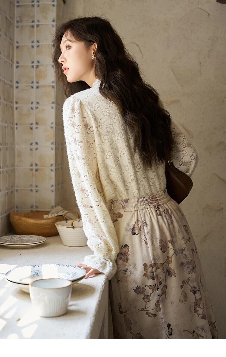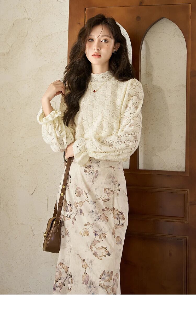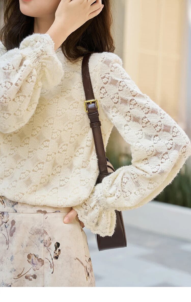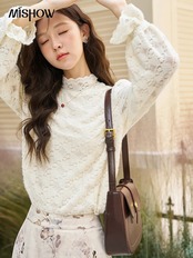 送料無料 MISHOW レディース レース ボトリング シャツ 秋 ランタン 長袖 スタンドカラー 中空アウト ブラウス シックで優しいトップス MXC47X1307 ロング オータム 秋物 AE12125556677633539209280