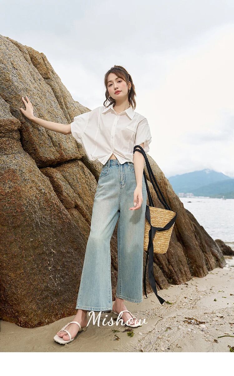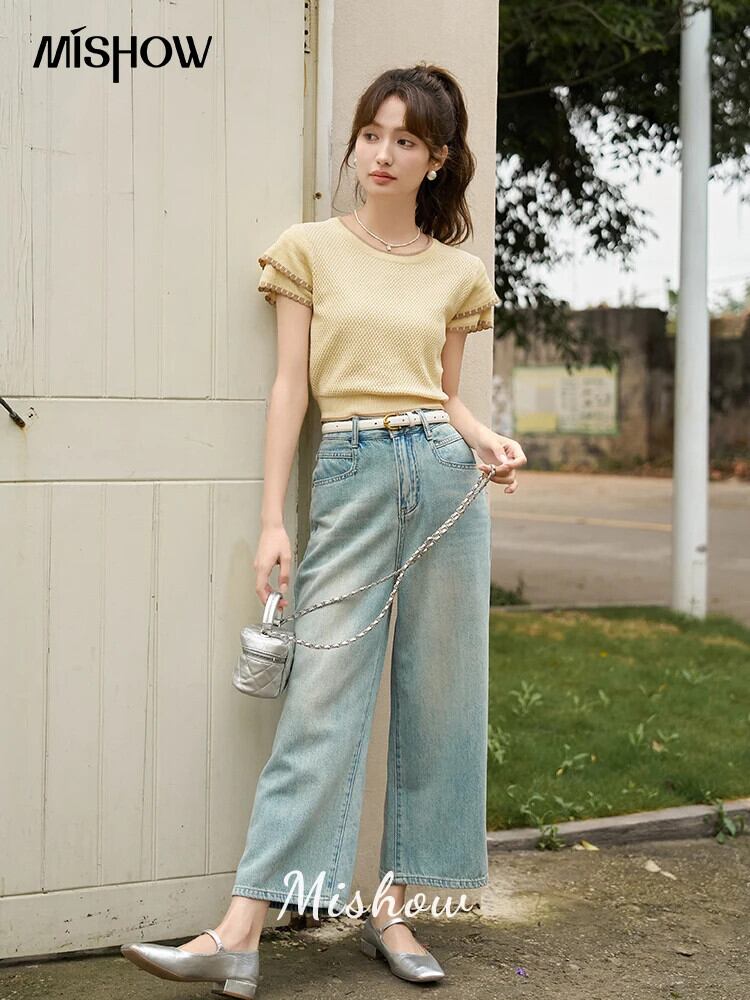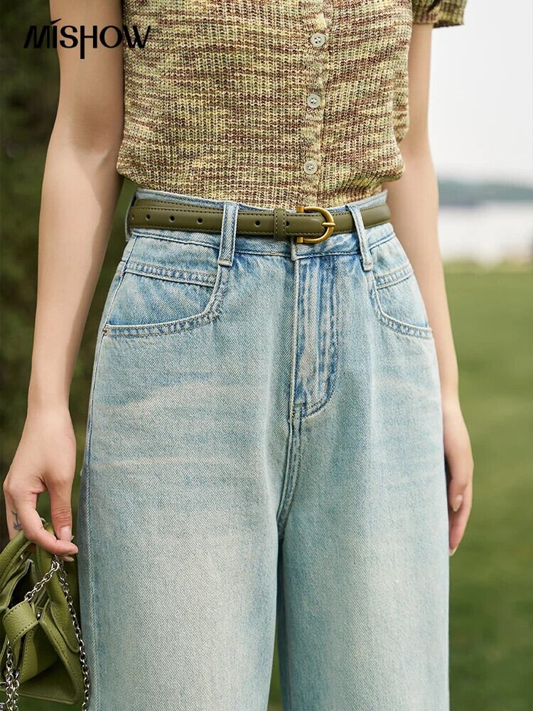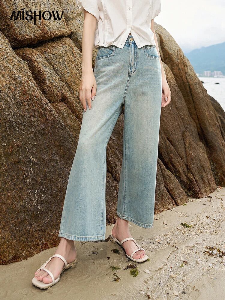 送料無料 MISHOW ジーンズ女性 2023 夏レトロデニムストレートルーズウエスト足首丈パンツオフィスレディ MXC37K0100 サマー 夏物 会社 学校 通勤や通学にも AE12125556677652527098521
