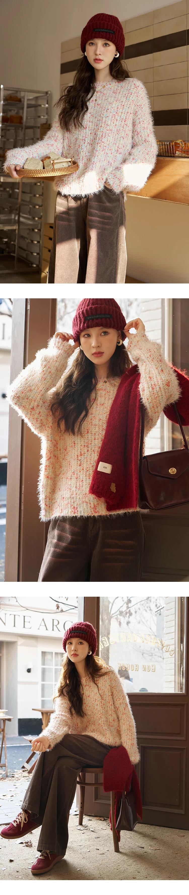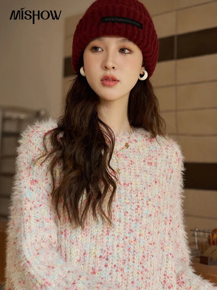 送料無料 MISHOW ニットセーター女性 2023 秋冬ルーズクルーネック甘いセータープルオーバーソフトトップスニット MXC52Z0333 大人ガーリー スウィート キュート カジュアル オータム 秋物 ウィンター 冬物 AE12125556677693943312798