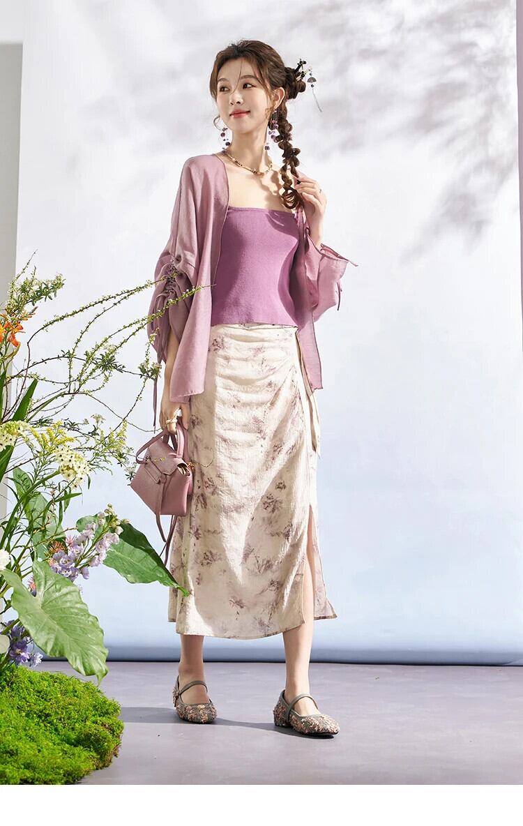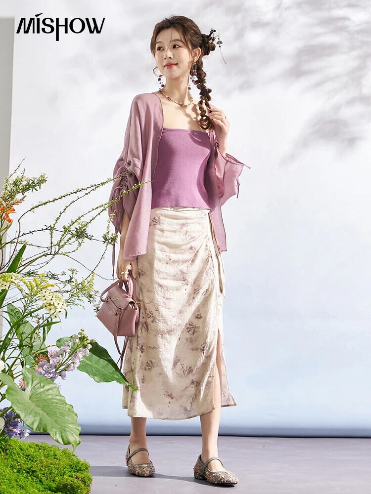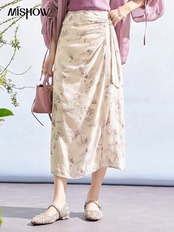 送料無料 MISHOW -ウエストAラインスカート 2024 春 花柄 折りたたみタイアップ スリム スイートシック 裾サイドスリット ミディスカート MXD12B0208 大人ガーリー スウィート キュート カジュアル スプリング 春物 AE12125556677612385421064