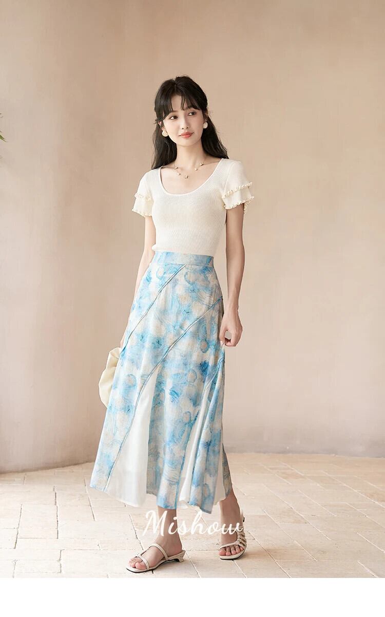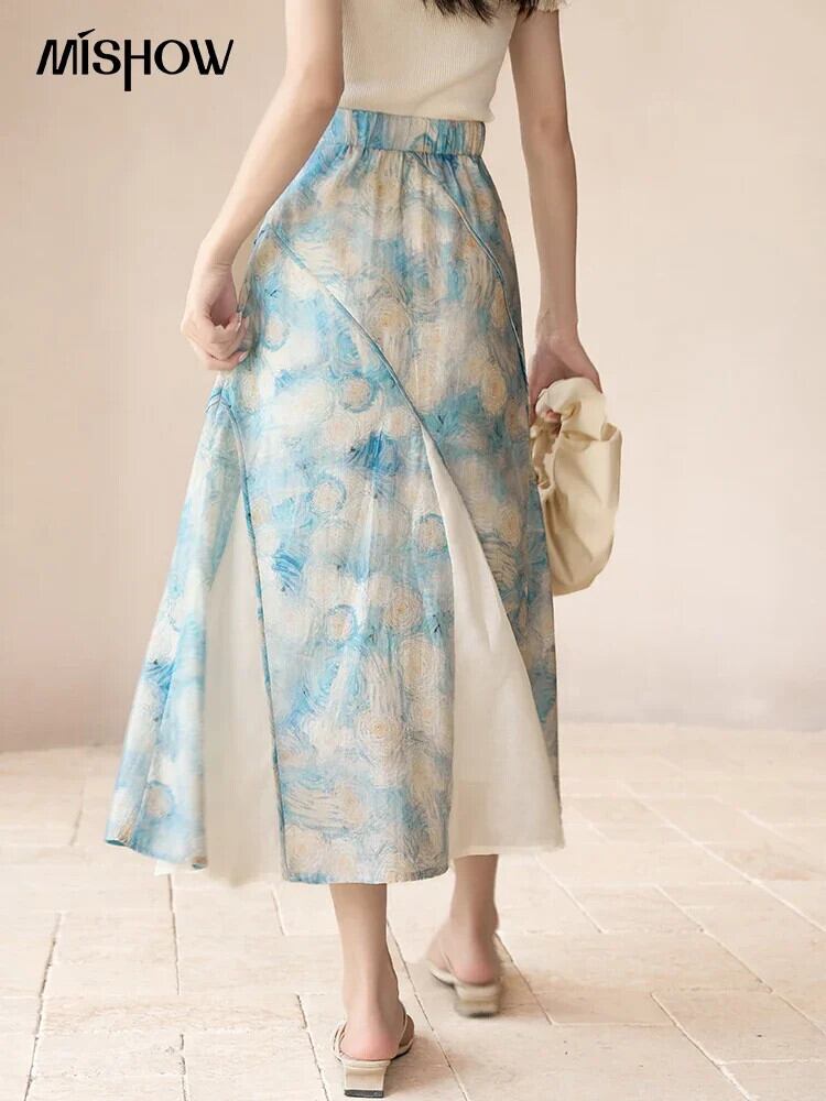 送料無料 MISHOW フランススカート レディース 2023 【ゴッホコレクション】アートプリーツウエストスリムフィットA-LINEスカート MXC39B0095 Aライン AE12125556677695928417558