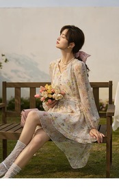 送料無料 MISHOW フランスの花柄ドレスの女性 2023 春夏長袖気質 V ネック膝丈 A ラインドレス MXC13L1266 ロング スプリング 春物 サマー 夏物 Vネック Aライン AE1212555667767808287366 | 女性の為の通販サイト-fashion navi