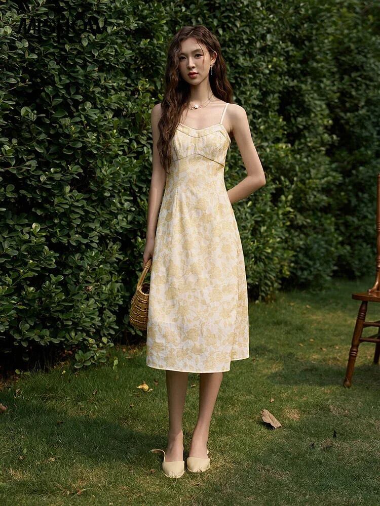 送料無料 MISHOW 女性のサスペンデッドドレス 2023 夏フレンチスリムフィットレトロ花 V ネック A ラインノースリーブミディドレス MXC36L1346 サマー 夏物 花柄 Vネック Aライン AE12125556677675464696295