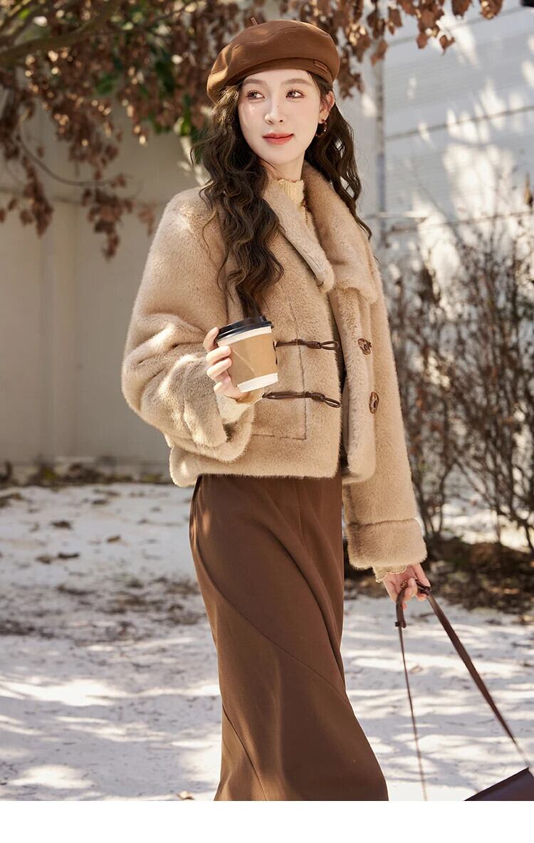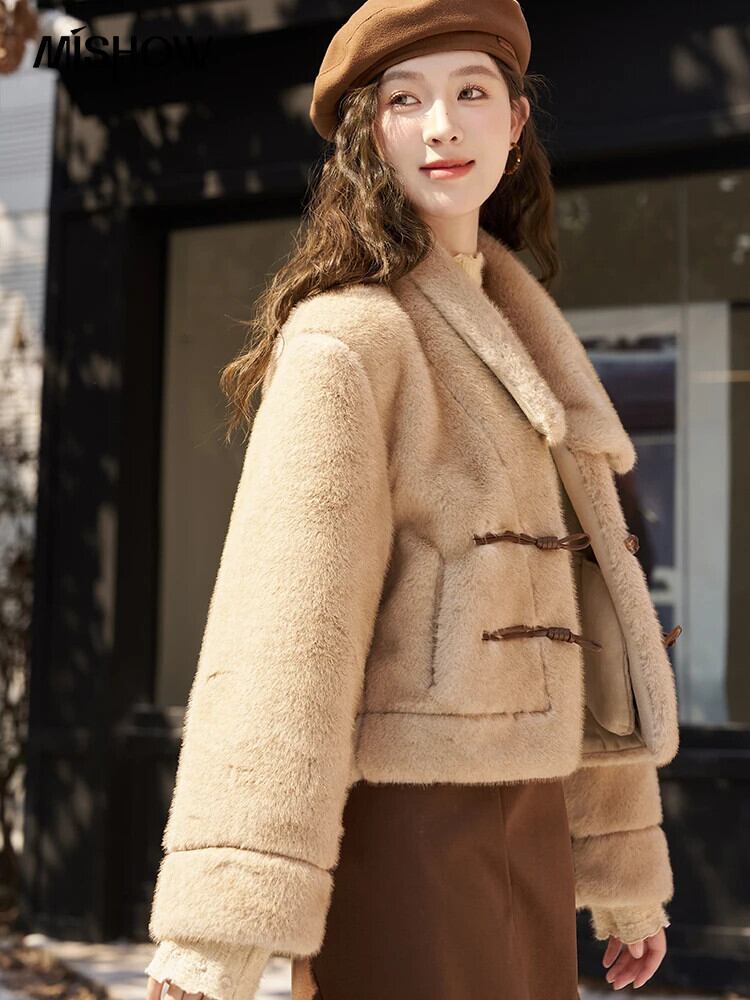 送料無料 MISHOW フェイクファーコートの女性秋冬ふわふわホーンボタン模造ミンクファージャケット女性 MXC58W0261 オータム 秋物 ウィンター 冬物 AE12125556677625443230344