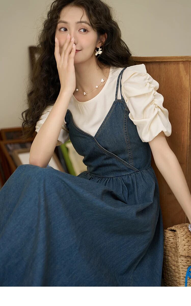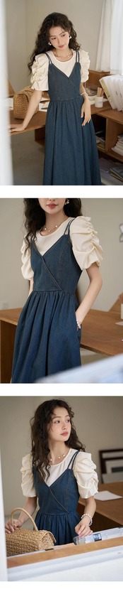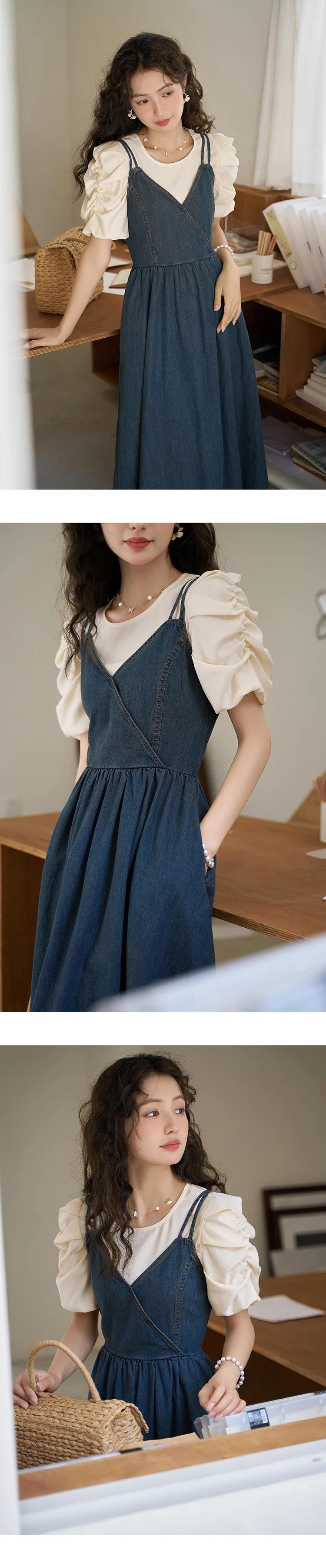 送料無料 MISHOW 女性のストラップドレス 2023 夏フレンチレトロブルーデニムウエスト A ライン V ネックポケットノースリーブドレス MXC37L1503 サマー 夏物 Vネック Aライン AE12125556677645870138612