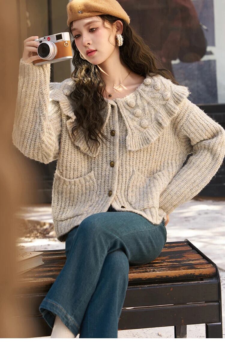 送料無料 MISHOW フランスピーターパン襟セーター女性秋冬ヴィンテージニットカーディガンセーターかわいいオフィスレディジャンパー MXC56Z0434 大人ガーリー スウィート キュート カジュアル オータム 秋物 ウィンター 冬物 ビンテージ 会社 学校 通勤や通学にも AE12125556677683924286871