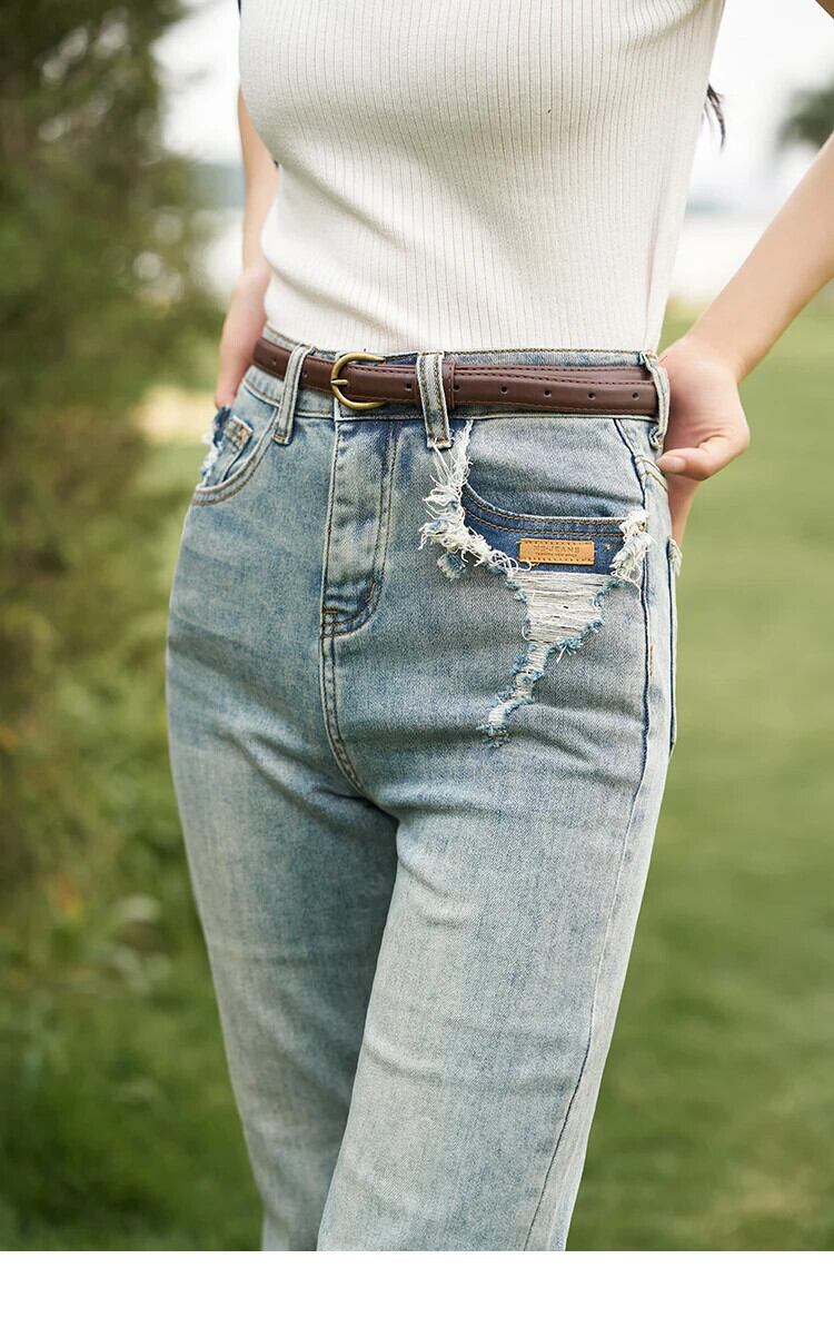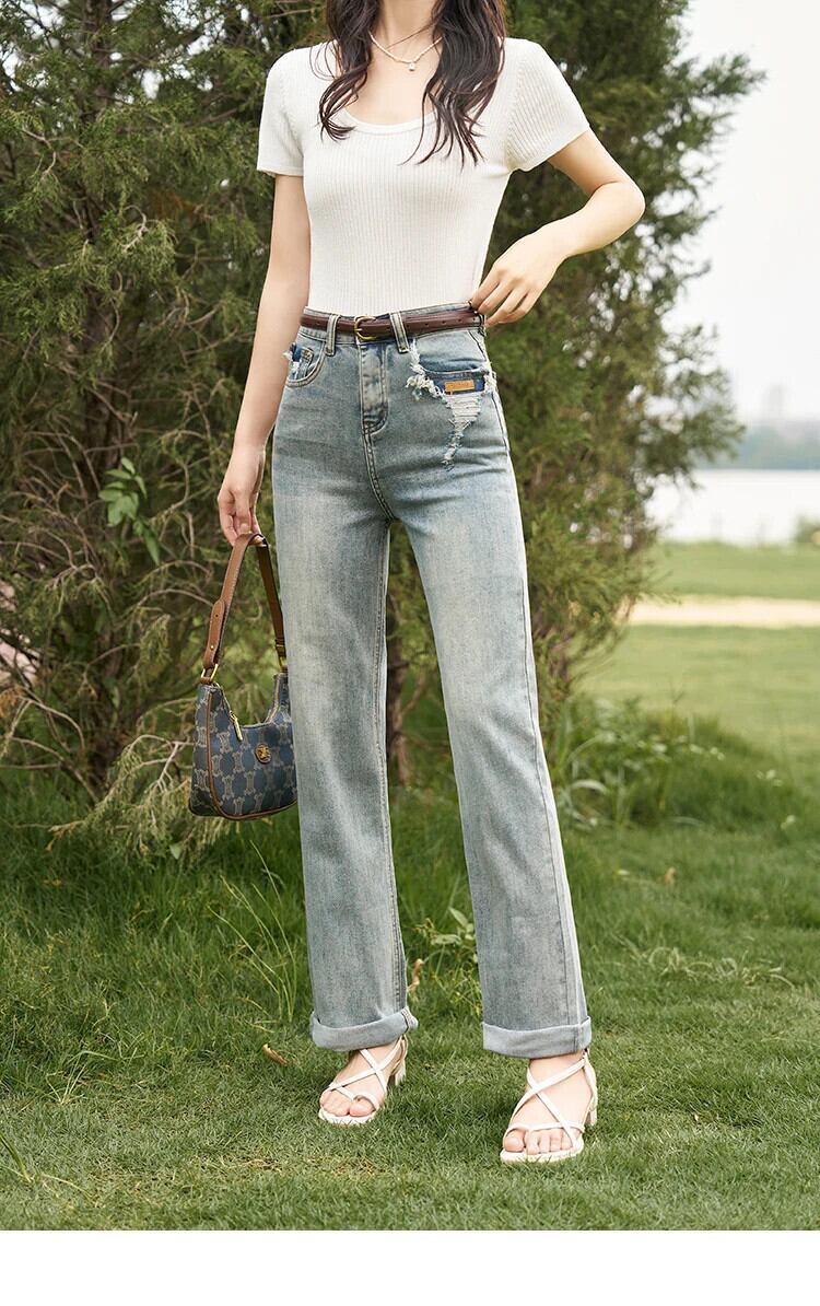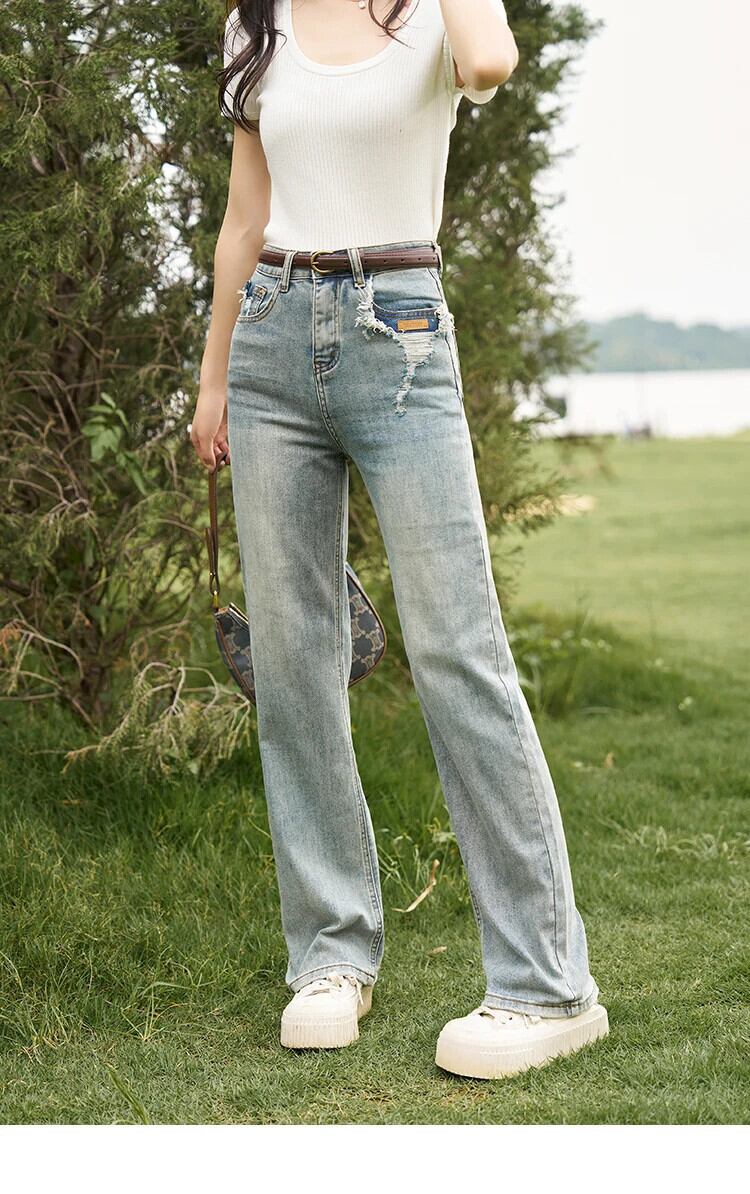 送料無料 MISHOW 女性のストレートレッグジーンズ夏 2023 デニムレトロウエストコントラストカラーポケット老朽化したパンツ MXC33K0053 サマー 夏物 AE12125556677671973611123