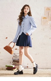 送料無料 MISHOW レディース イレギュラー ストライプ シャツ 2024 春 フレアスリーブ シングルブレスト プレッピー スタイル ポロネック シャツ MXD12C0152 レッド スプリング 春物 AE12125556677610347506637 | 女性の為の通販サイト-fashion navi