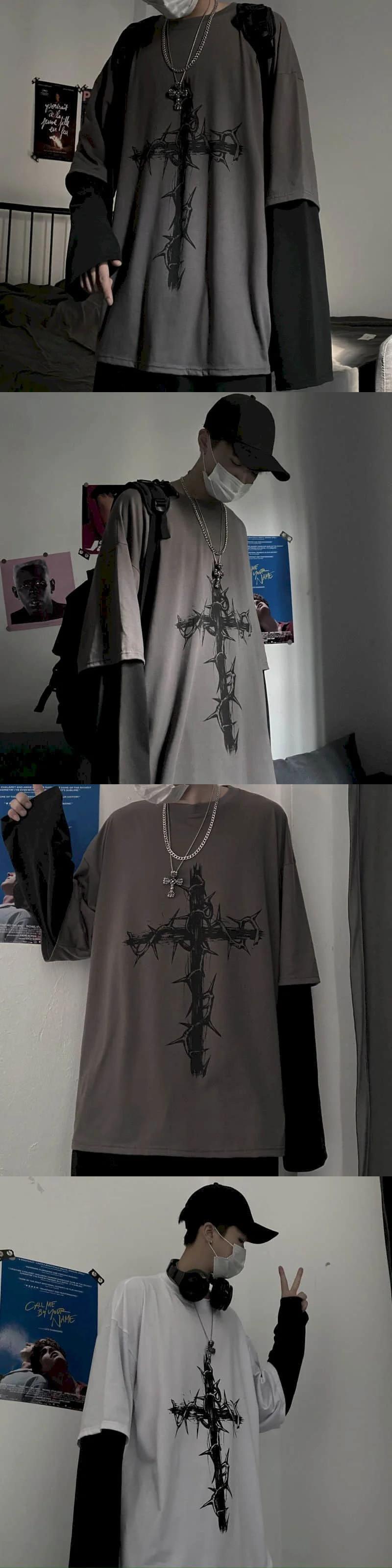 送料無料 Tシャツ男性夏いばらの十字架スーツケースメンズ Tシャツ長袖ダークヒップホップ男性のオーバーサイズ tシャツ Y2k Tシャツトップス ロング サマー 夏物 AE1212666577213350903