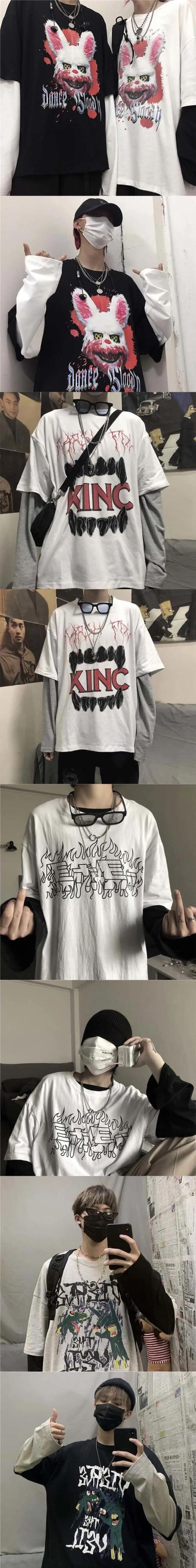 送料無料 Tシャツ男性長袖 tシャツ紳士服秋 Y2k ゴシック特大グラフィック Tシャツストリート原宿トップス ロング かわいい オータム 秋物 AE1212666563801090865