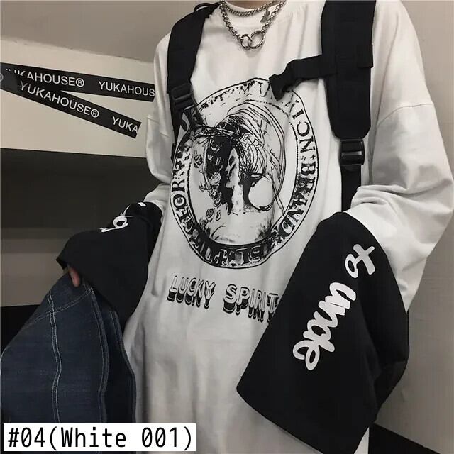 送料無料 メンズ Tシャツ 長袖 Tシャツ フェイク 2 枚 アニメ Tシャツ バージョン 紳士服 ルーズストリート ヒップホップシャツ ロング AE1212666572678619767