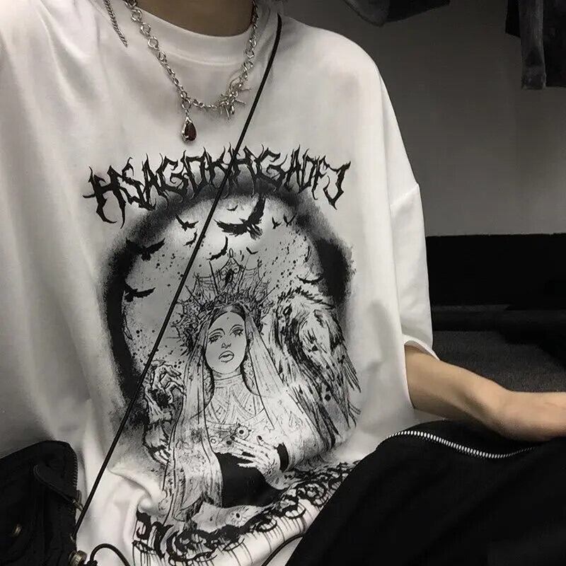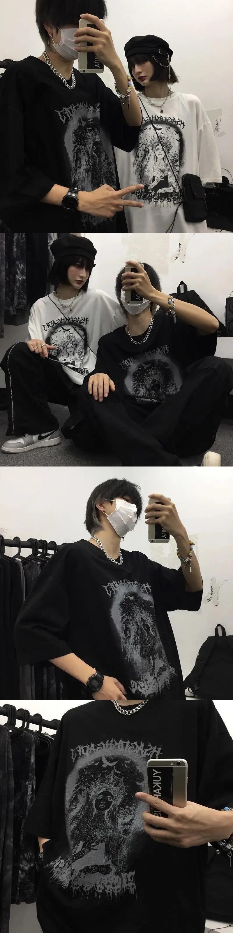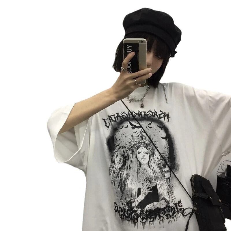 送料無料 Tシャツ男性 2023 夏男性ゴシック Y2k トップ半袖コットン Tシャツダーク嘆きの天使の肖像プリントヴィンテージ Tシャツ男性 サマー 夏物 ビンテージ AE12126665952799411