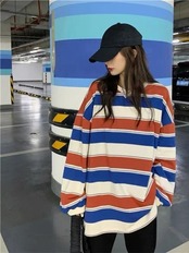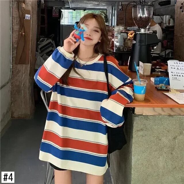 送料無料 女性 Tシャツ夏のトレーナーストライプ薄い Tシャツ原宿プルオーバーカップルマッチング長袖トップス Tシャツ ロング かわいい サマー 夏物 AE1212666575460912337