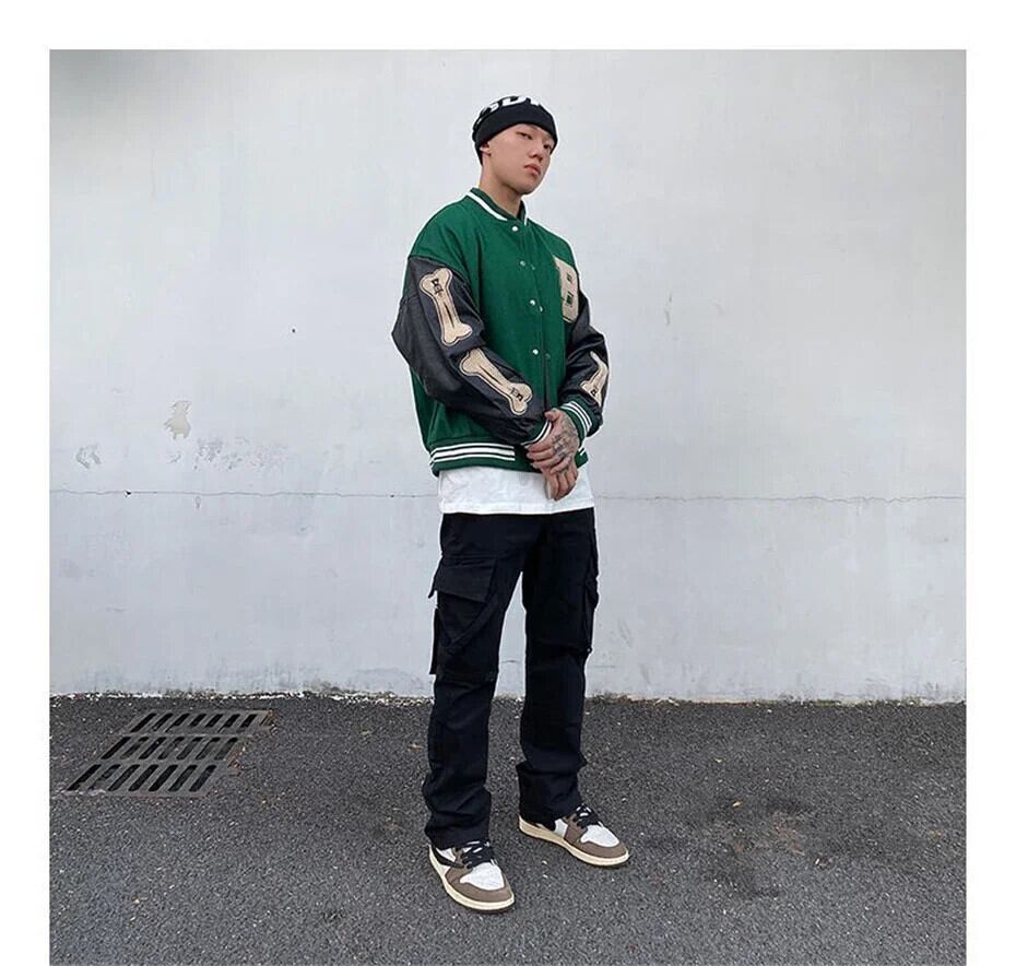 送料無料 メンズジャケットボンバージャケット Y2k トップス 2023 冬男性服骨パッチワークレザーユニセックス代表チームジャケット男性野球ジャケット ウィンター 冬物 AE1212666555833135253