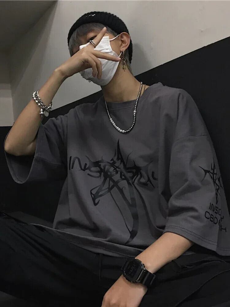 送料無料 特大男性 tシャツヴィンテージプリントスターレター半袖 tシャツ男性 Y2k トップス 2023 夏のストリートルーズカップル tシャツ サマー 夏物 ビンテージ AE1212666581302311026