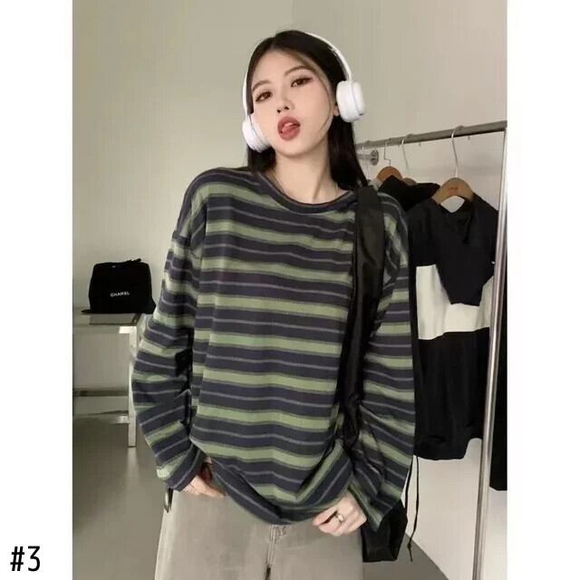 送料無料 女性 Tシャツストライプトレーナー薄型トップス 2023 春の女性のカップル長袖 Tシャツ y2k プルオーバー ロング スプリング 春物 AE1212666555060594918