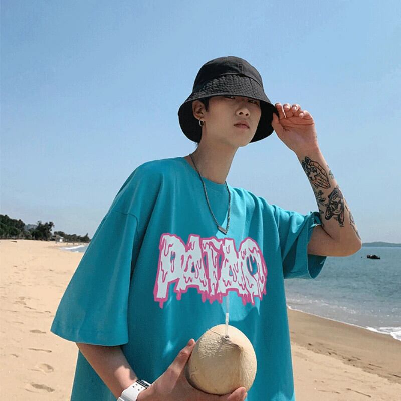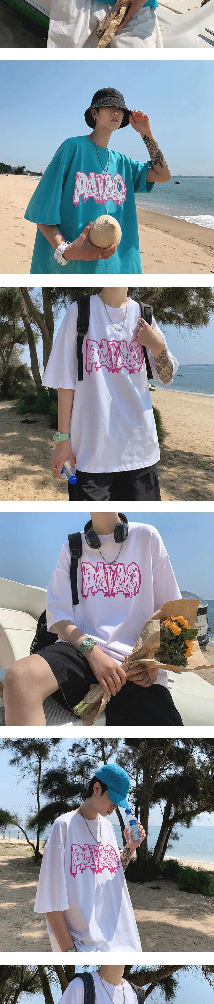送料無料 2023 秋の男性半袖 Tシャツストリートトップ男性特大プリント Tシャツ綿スポーツルーズ Tシャツ男性 コットン オータム 秋物 AE121266652596514541