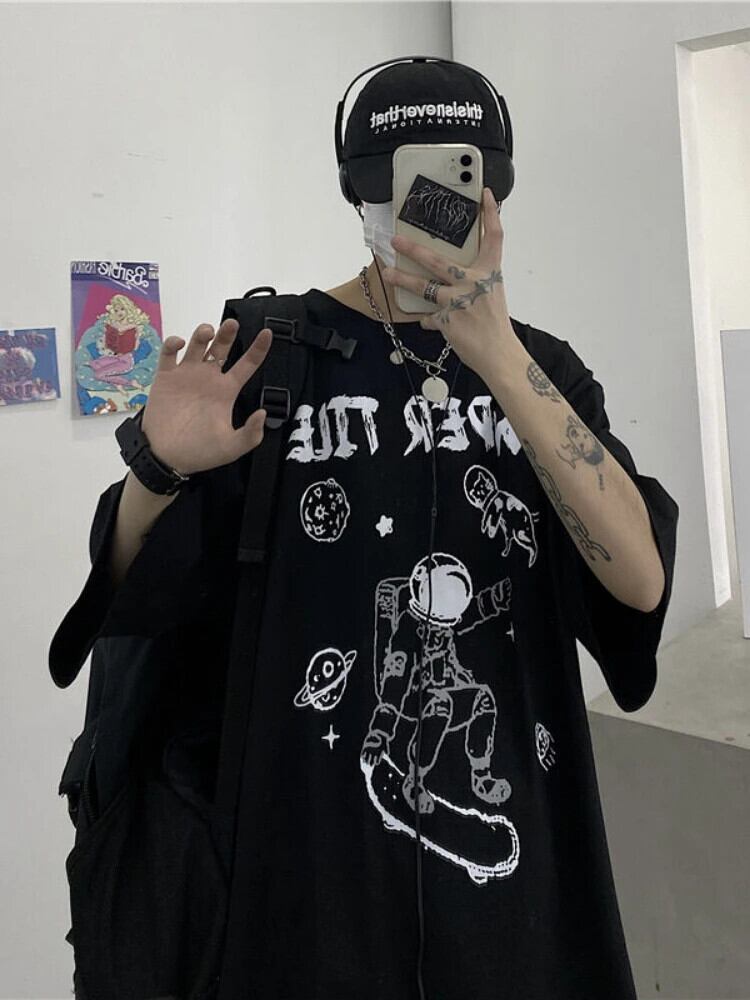 送料無料 秋の紳士服 tシャツ男性オーバーサイズヴィンテージマンガ O ネック半袖グラフィック y2k トップス男性 Tシャツストリート オータム 秋物 Oネック ビンテージ AE1212666524092901507