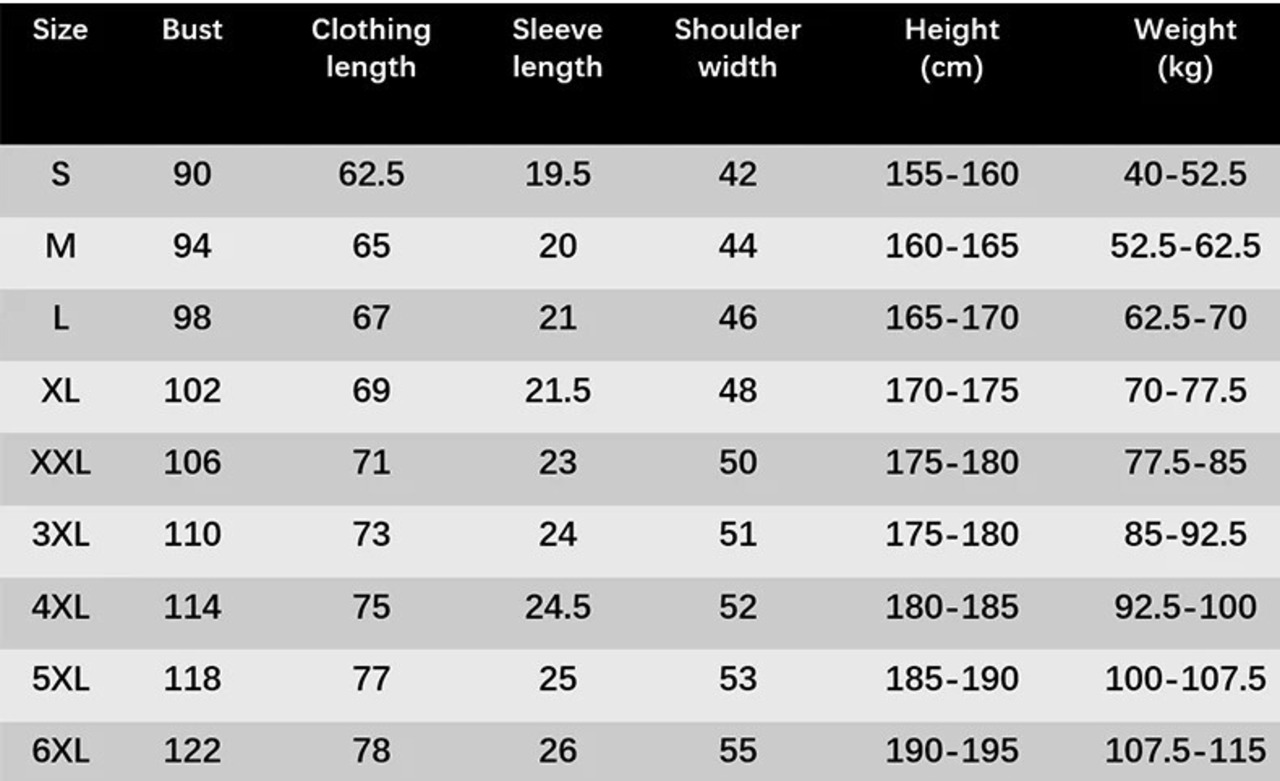 サイズ:S,M,L,XL,XXL,XXXL,4XL,5XL,6XL