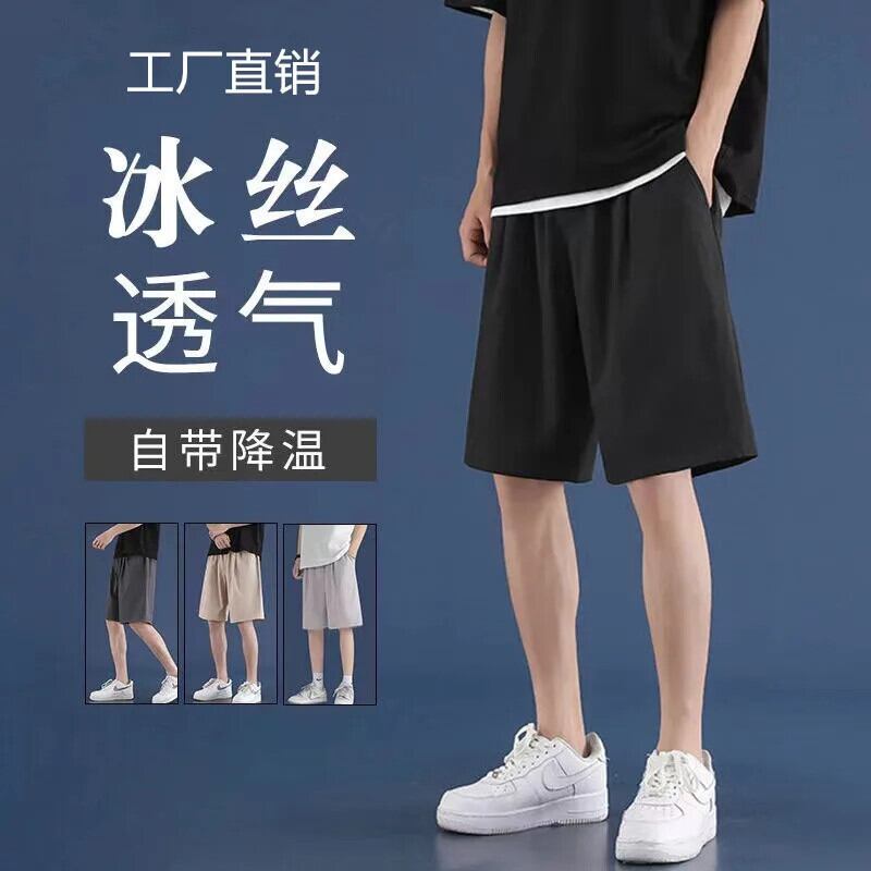 送料無料 メンズショーツ夏アイスシルクスウェットパンツルーズメッシュショーツ通気性速乾性パンツ男バスケットボールショーツビーチショートパンツ サマー 夏物 ブルマー AE1212666536782399311