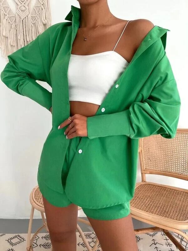 送料無料 女性 2 点スーツ長袖ボタンブラウス 2023 シャツとショーツセットジャケット 2 点セットグリーン衣装 26310 ロング ブルマー AE665656650861459583 | 女性の為の通販サイト-fashion navi