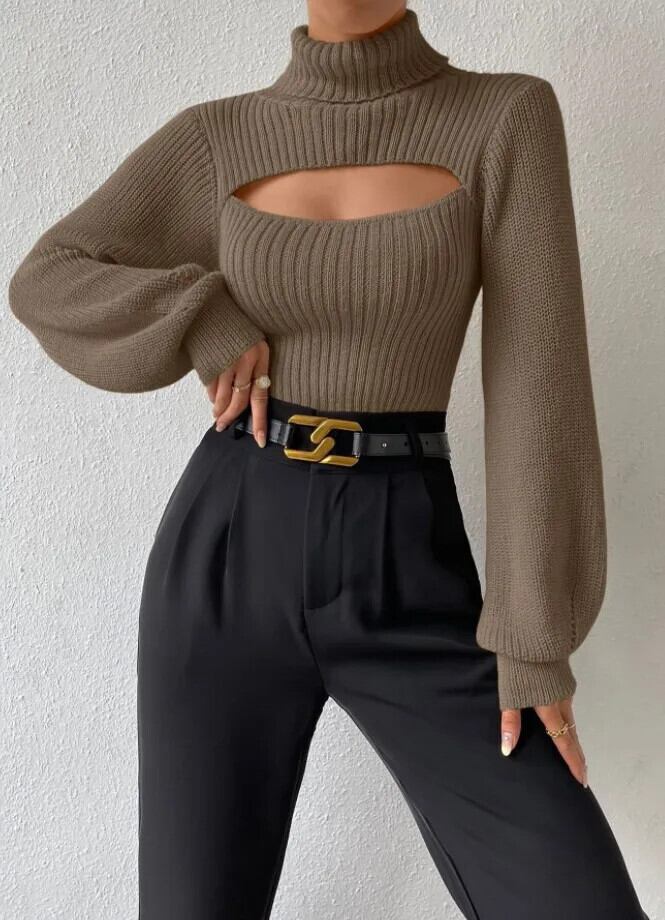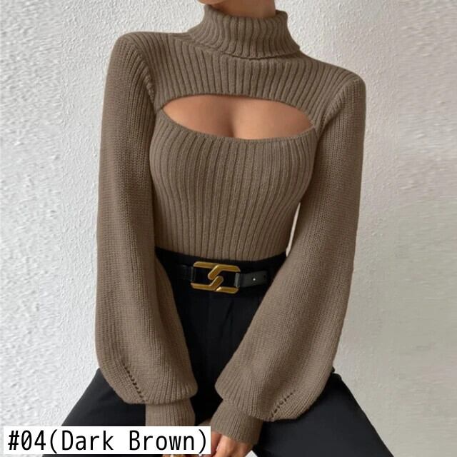 送料無料 長袖トップスセクシーな中空アウトセーター秋冬シックなタートルネックプルオーバー女性ニット固体スリムフィット服 29417 ロング オータム 秋物 ウィンター 冬物 ソリッドカラー AE665656650075392316