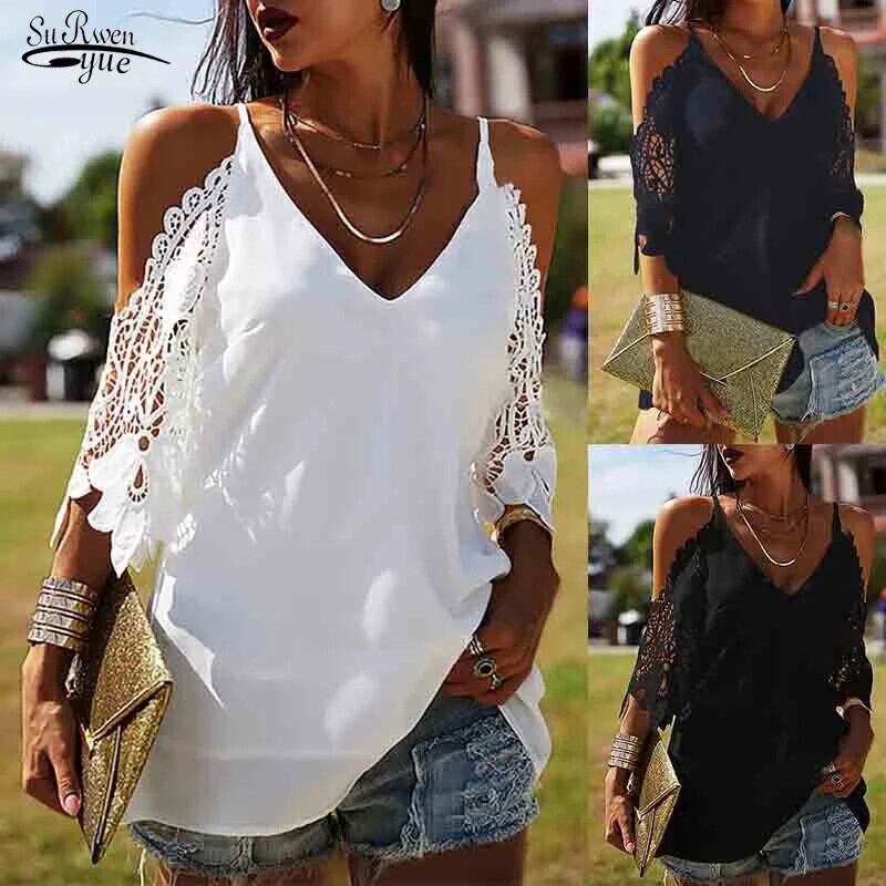 送料無料 パフスリーブトップス服女性レースシャツスイートアプリコット V ネックフリルブラウス Blusa 25356 ラッフル 大人ガーリー スウィート キュート カジュアル Vネック AE665656689297642409