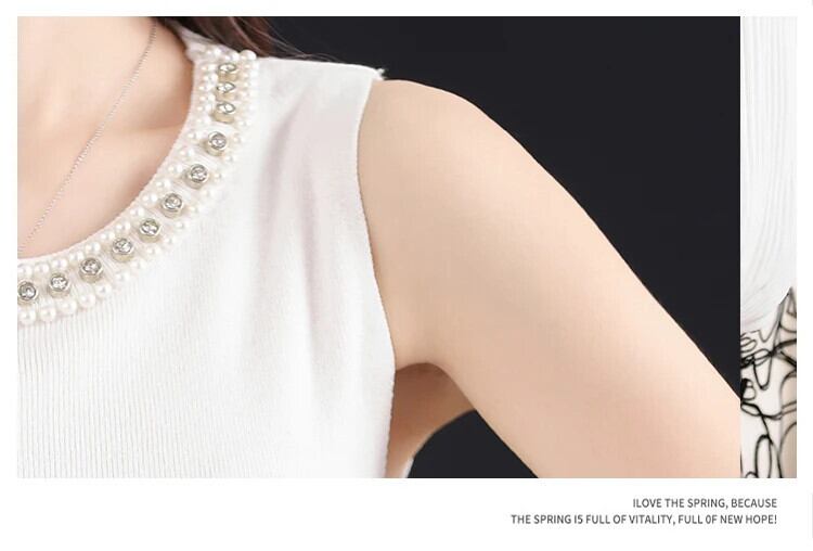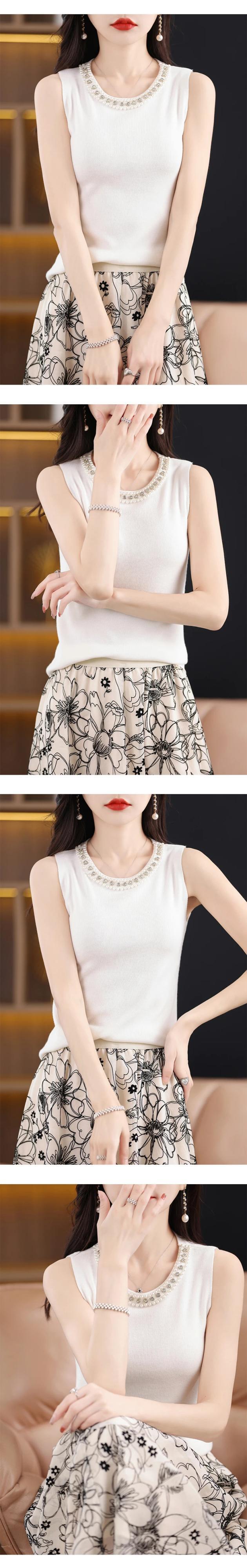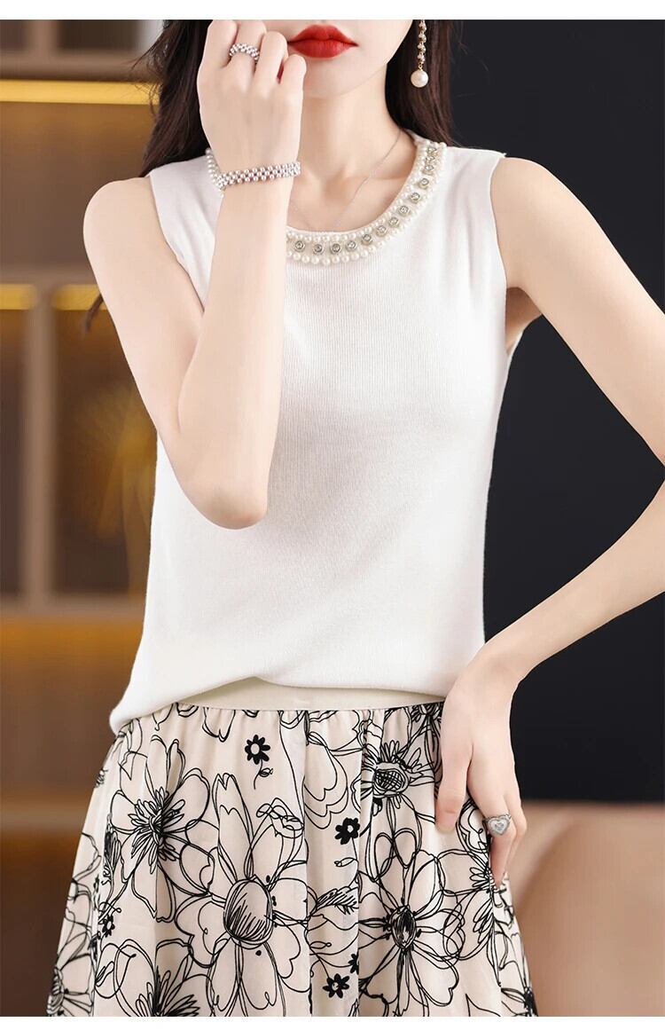 送料無料 夏スタイリッシュなニットトップス女性ブラウス 2023 O ネックノースリーブベスト Oneck シャツ真珠 27645 サマー 夏物 Oネック パール AE665656615964968203