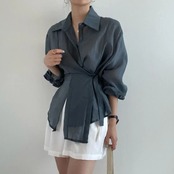送料無料 2024 ボタンシャツルーズ長袖ブラウス女性不規則な日焼け止めシャツトップス 15674 ロング AE665656695504675300