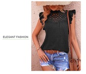 送料無料 女性の夏中空アウトレースジャカードブラウスフライングスリーブスタンドカラー黒シャツ女性トップス 25323 ブラック サマー 夏物 AE665656649518469919 | 女性の為の通販サイト-fashion navi