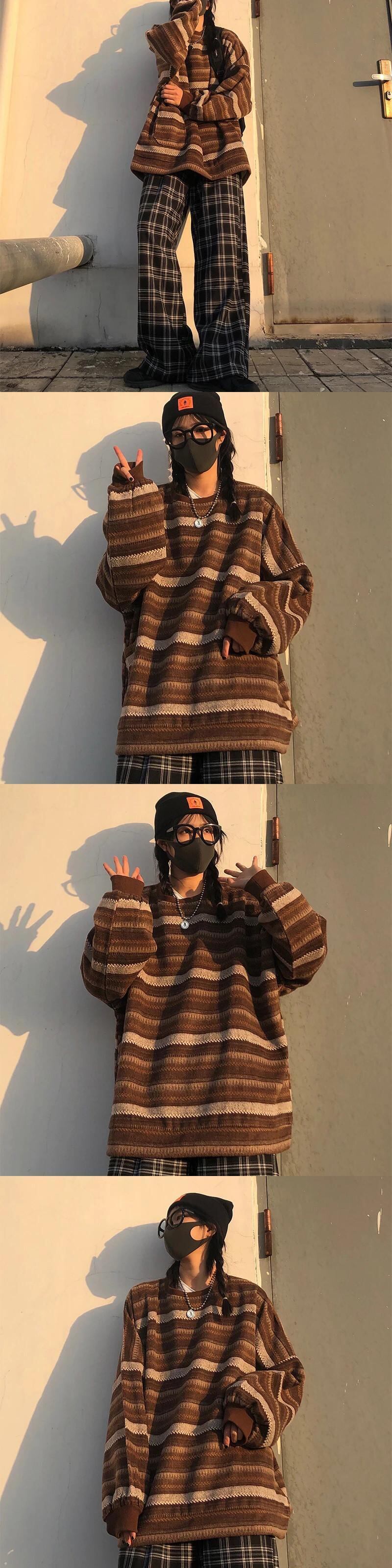 送料無料 秋の女性ヴィンテージストライププルオーバーセーター冬シャツスウェット長袖ニットヒップホップトップスルーズニット 28418 ロング オータム 秋物 ウィンター 冬物 ビンテージ AE665656638298870940