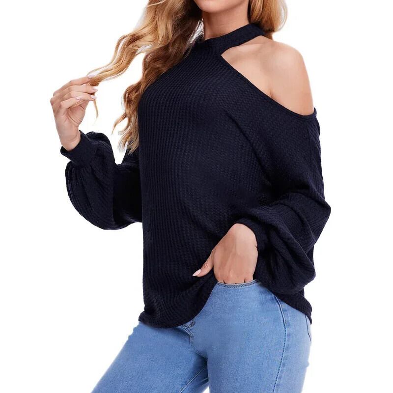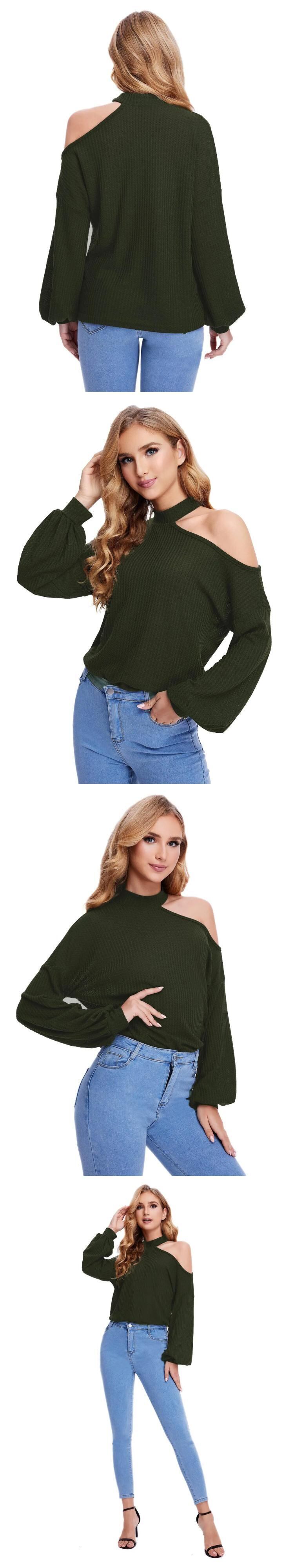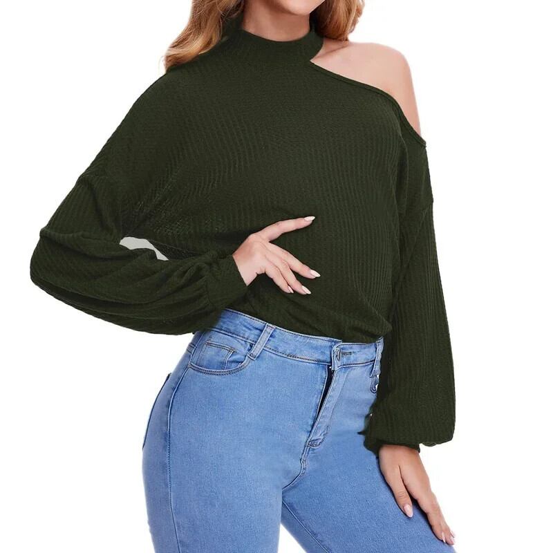 送料無料 パフ長袖オフショルダーニット女性のブラウスエレスティック女性シャツルーズ 23388 ロング AE665656688991531837