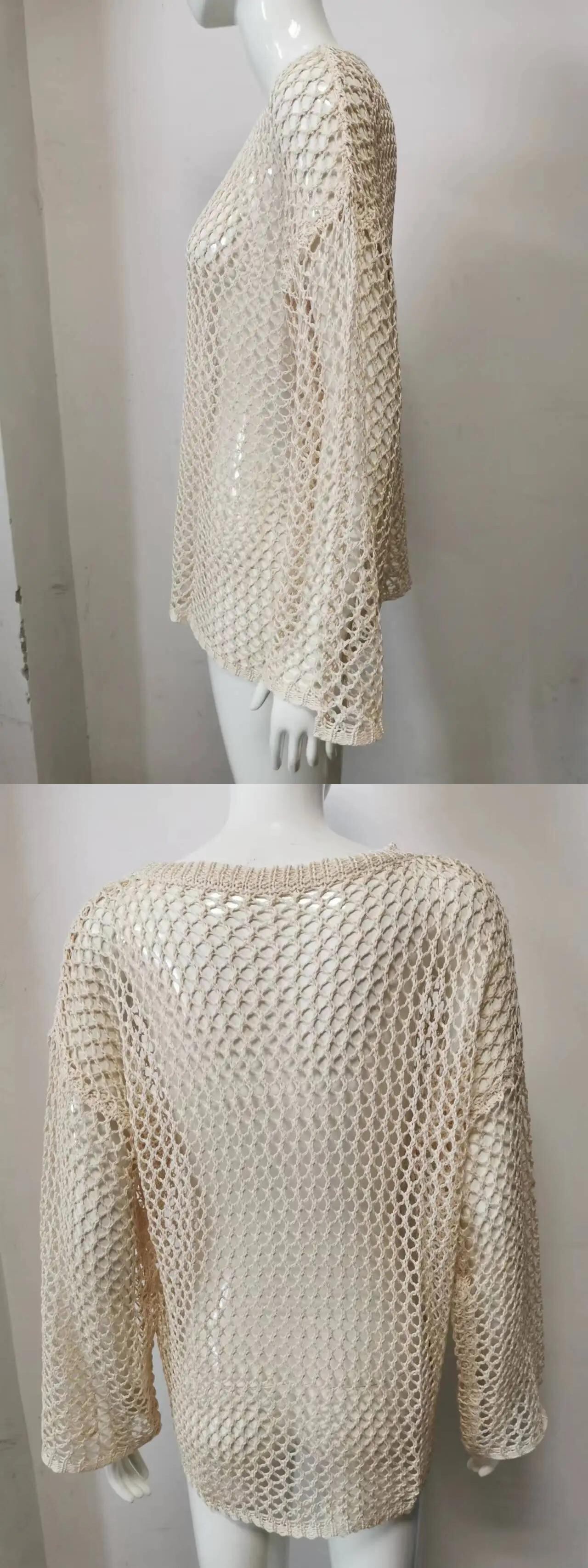 送料無料 2023 O ネックルーズセクシーなシャツ夏のセクシーなトップス女性秋中空アウトメッシュニットブラウス日焼け止め服 28195 サマー 夏物 オータム 秋物 Oネック AE665656629534778002