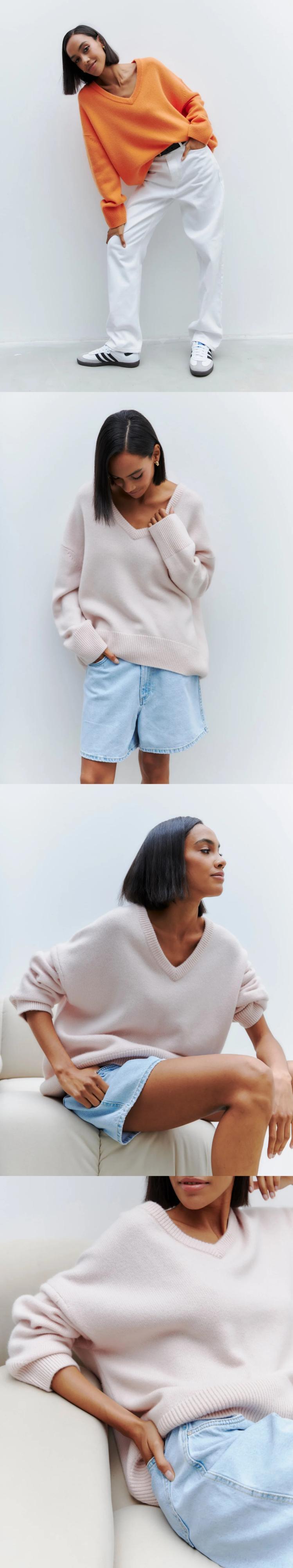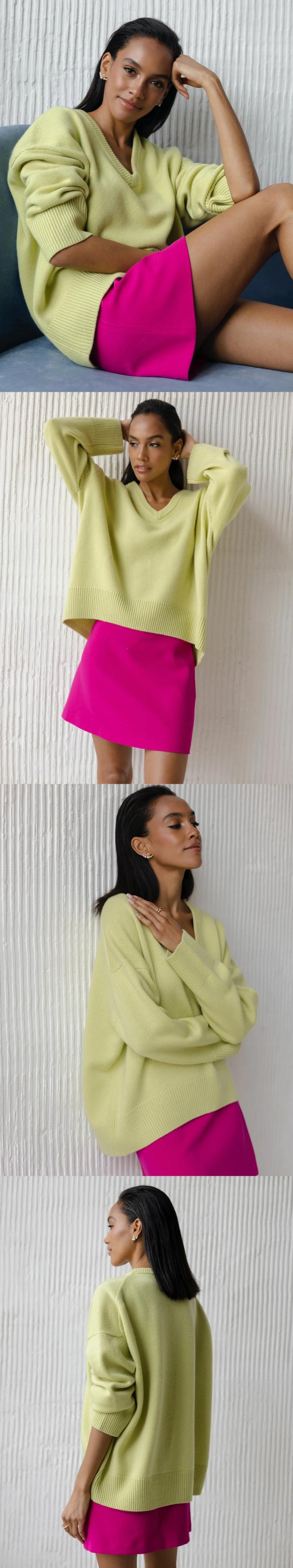 送料無料 秋の V ネックルーズ長袖女性のセーター 2023 冬ソリッドカラーニットトッププルオーバーニット 29024 ロング オータム 秋物 ウィンター 冬物 Vネック AE665656627104699046