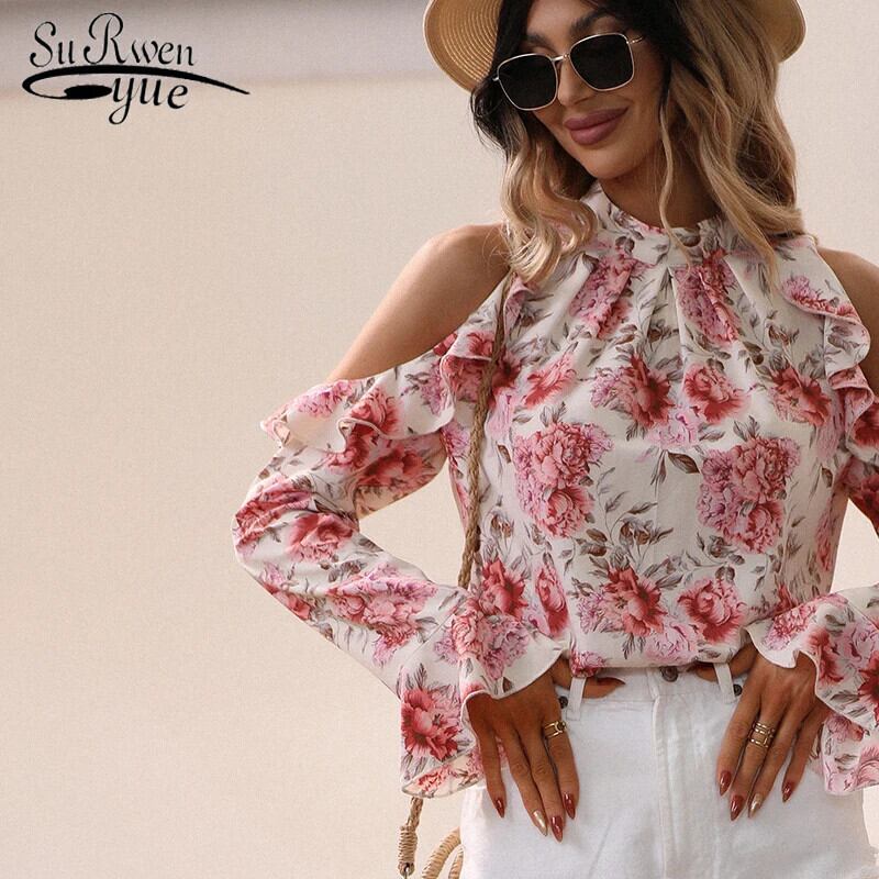 送料無料 秋ロングランタンスリーブシックなトップスフレンチスタイル甘いセクシーなオフショルダートップス花柄シャツプリントブラウス春服28602 大人ガーリー スウィート キュート カジュアル スプリング 春物 オータム 秋物 AE665656648107708649 | 女性の為の通販サイト-fashion navi