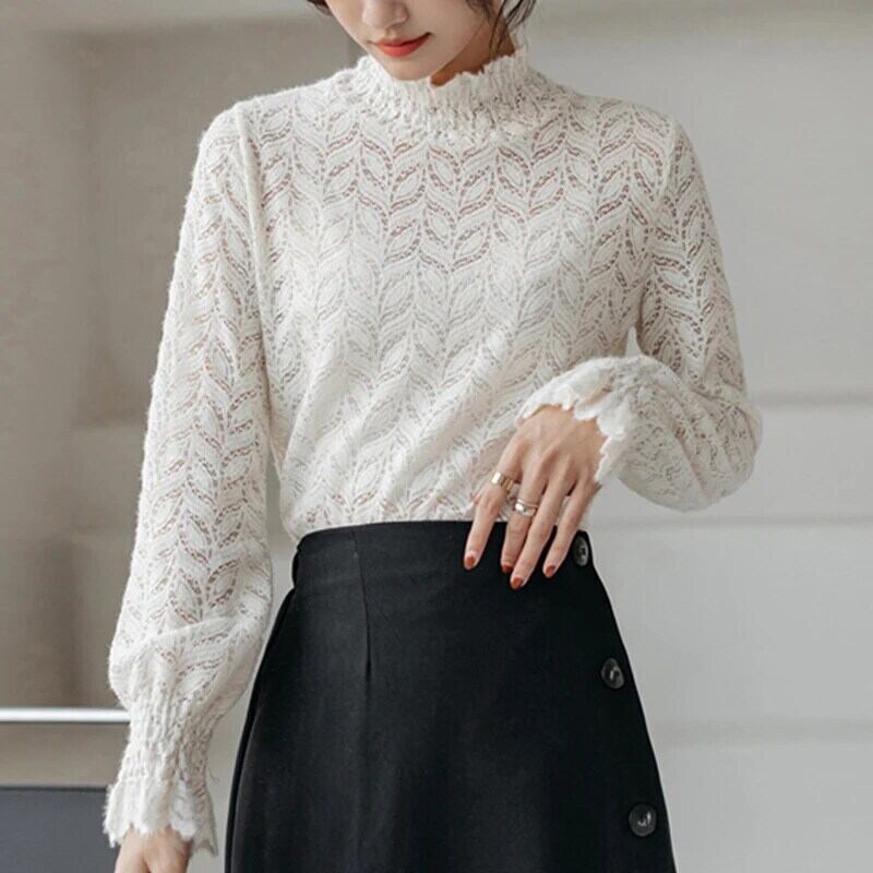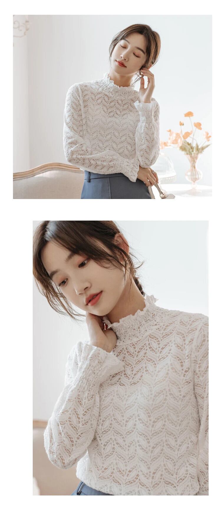 送料無料 2023 秋中空かぎ針編みシンプルなシャツタートルネックレースブラウス女性春長袖トップス 28816 ロング スプリング 春物 オータム 秋物 AE665656687996181486
