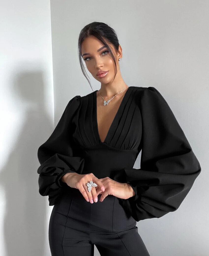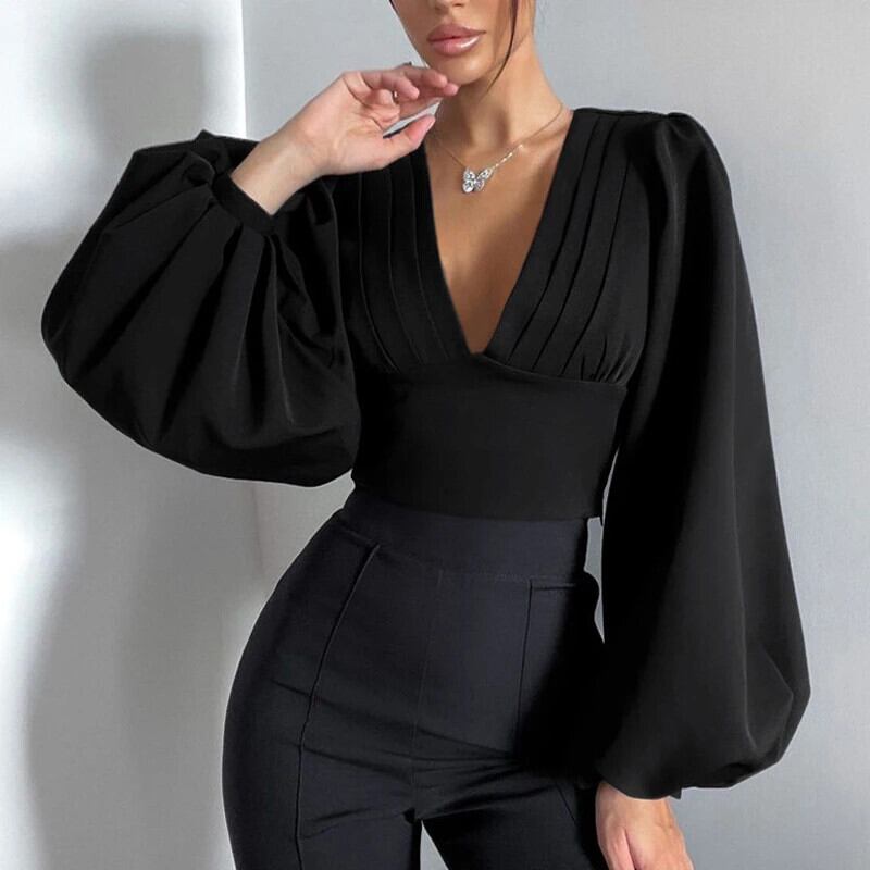送料無料 スリム V ネックショートシャツヴィンテージランタンスリーブ白ブラウス女性女性オフィスレディクロップトップス Blusa 28688 ホワイト Vネック ビンテージ 会社 学校 通勤や通学にも AE665656688835105435