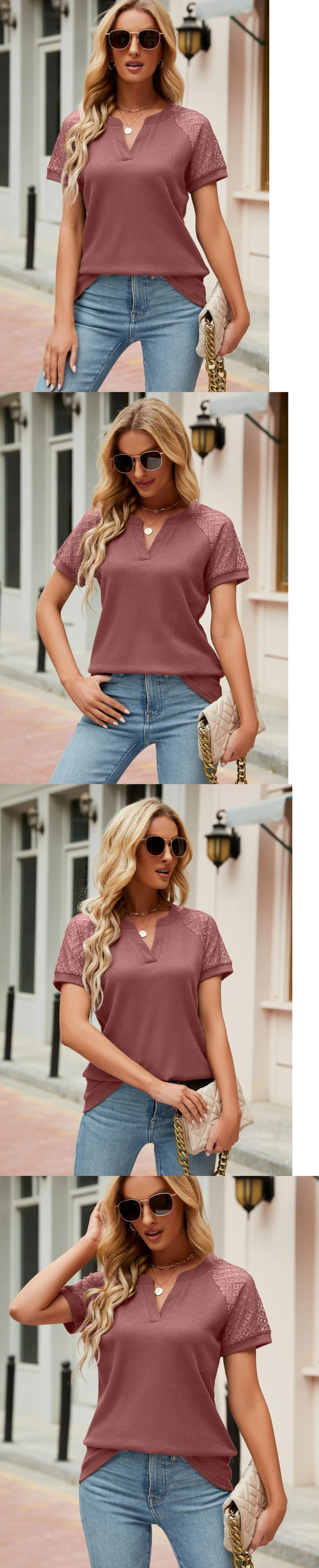 送料無料 夏の女性の Tシャツ V ネックレーストップ 2023 ルーズ Tシャツ半袖女性オフィストップス 24914 サマー 夏物 Vネック 会社 学校 通勤や通学にも AE665656634356725604 | 女性の為の通販サイト-fashion navi