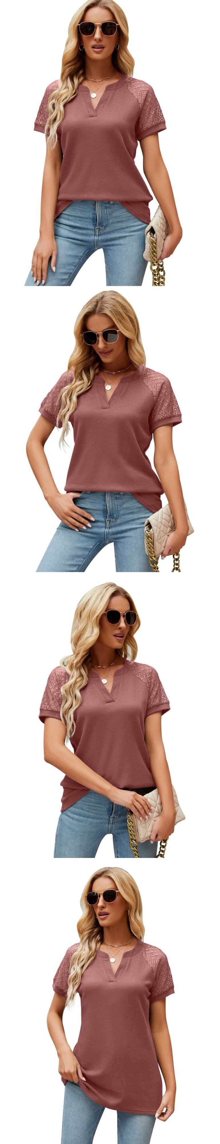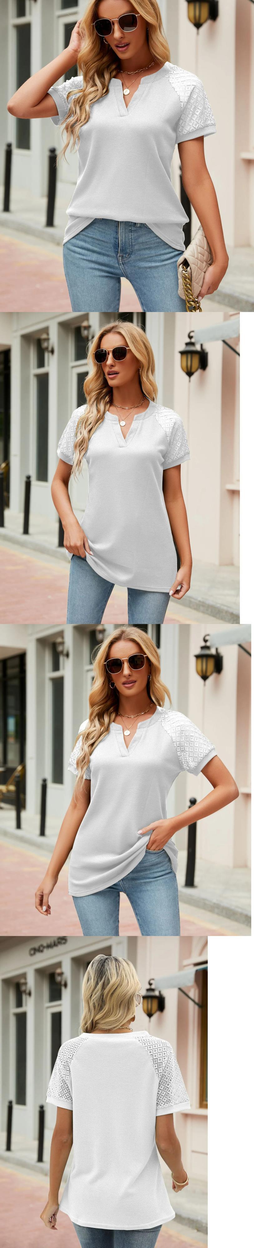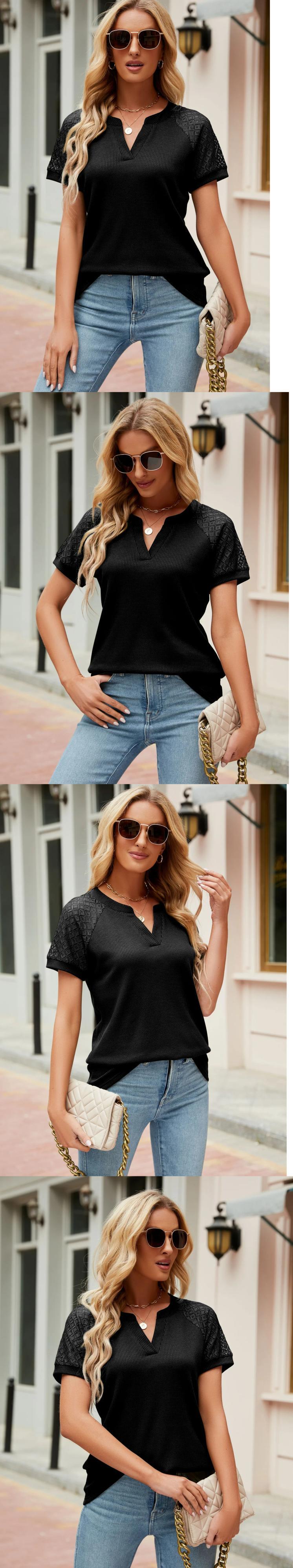 送料無料 夏の女性の Tシャツ V ネックレーストップ 2023 ルーズ Tシャツ半袖女性オフィストップス 24914 サマー 夏物 Vネック 会社 学校 通勤や通学にも AE665656634356725604