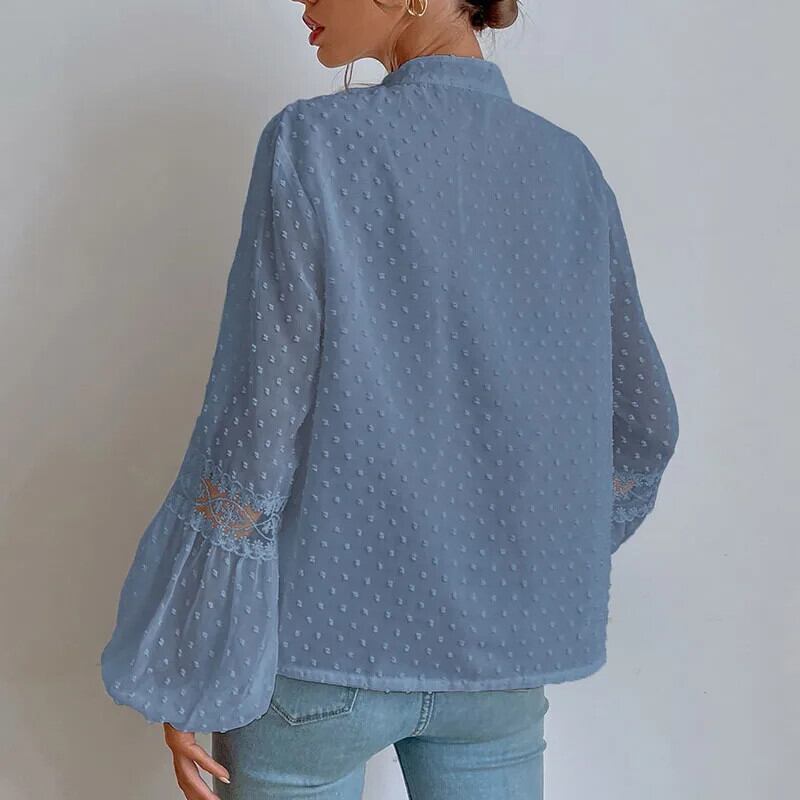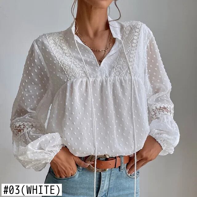 送料無料 女性シャツヴィンテージランタンスリーブ女性ブラウスレースアップトップス秋ルーズシフォンレース白ブラウス 23214 ホワイト オータム 秋物 ビンテージ AE665656690063175799