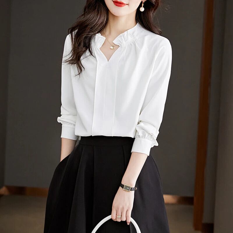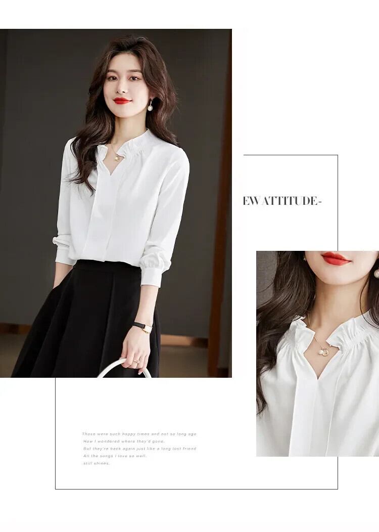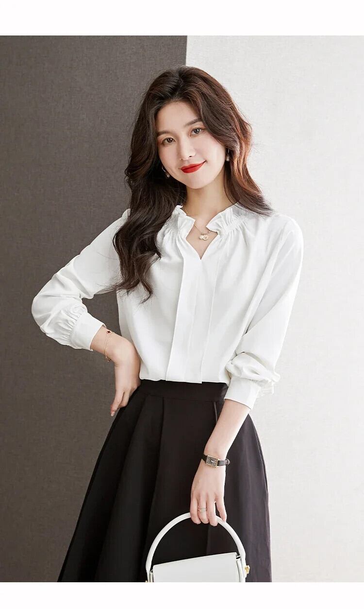 送料無料 Sweet Woman トップス サテン ブラウス 女性 オフィス レディー ホワイト レディース シャツ フレンチ V ネック 29526 大人ガーリー スウィート キュート カジュアル Vネック 会社 学校 通勤や通学にも AE665656673948813546