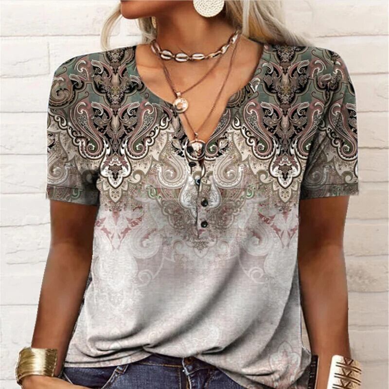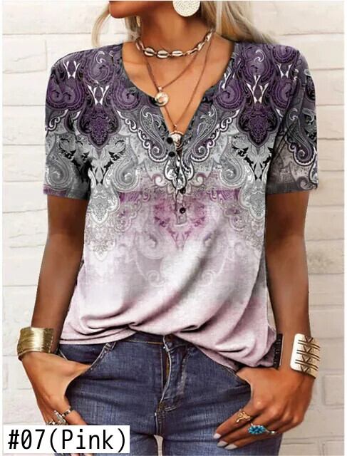 送料無料 女性の綿 Tシャツルーズシャツ半袖トップスプリント Tシャツ V ネックベーシック Tシャツ 24818 コットン Vネック AE665656615119415485