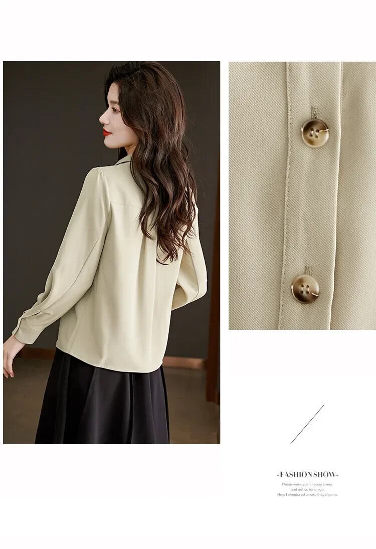 送料無料 フランスの女性トップス長袖シフォン女性シャツフレンチ V ネックルーズ女性のブラウスターンダウン襟服 29508 ロング Vネック AE665656613047240129