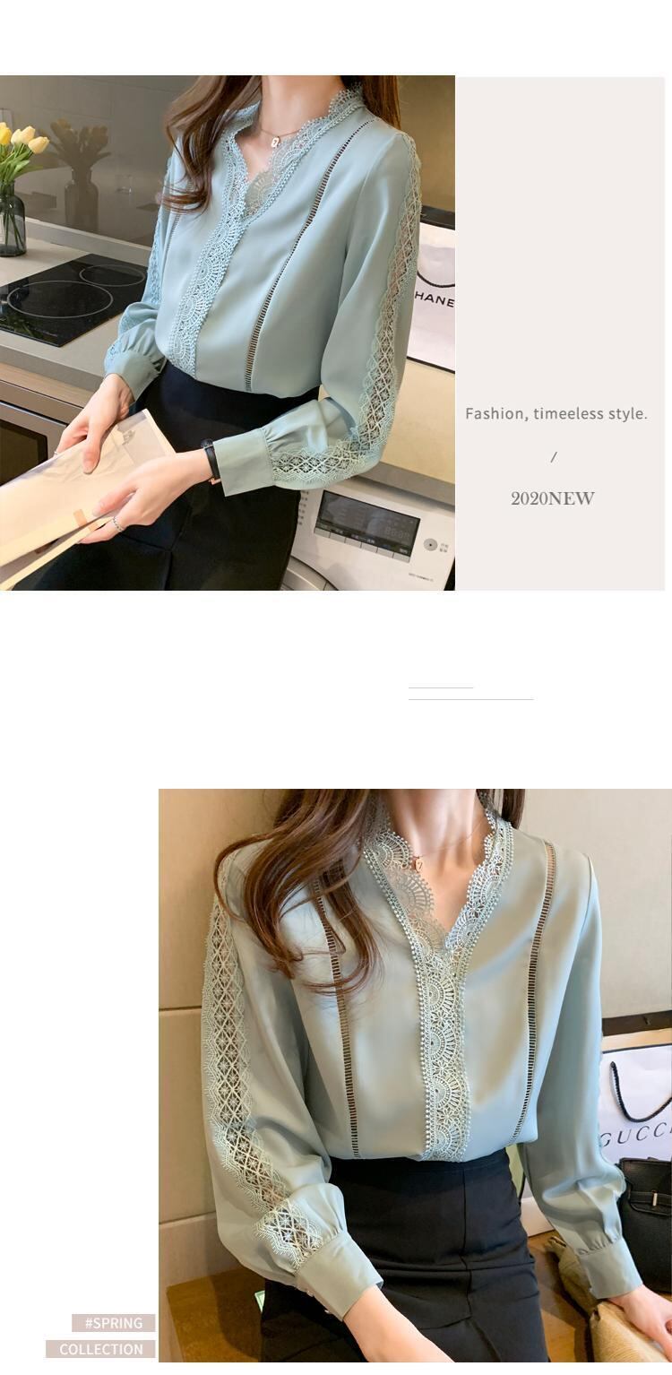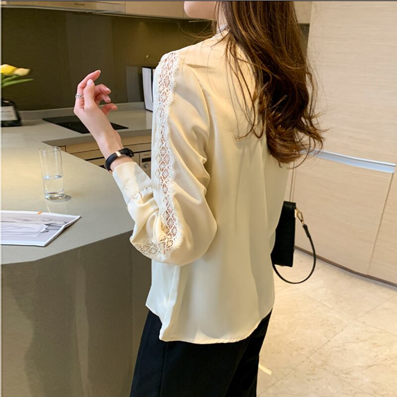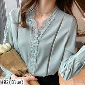 送料無料 プルオーバー V ネック女性レースシフォンブラウススリムフィット長袖シャツ春秋固体底トップス 25011 ロング スプリング 春物 オータム 秋物 Vネック ソリッドカラー AE665656695123729790
