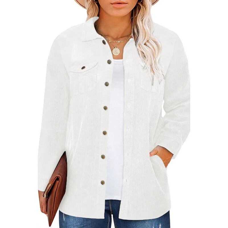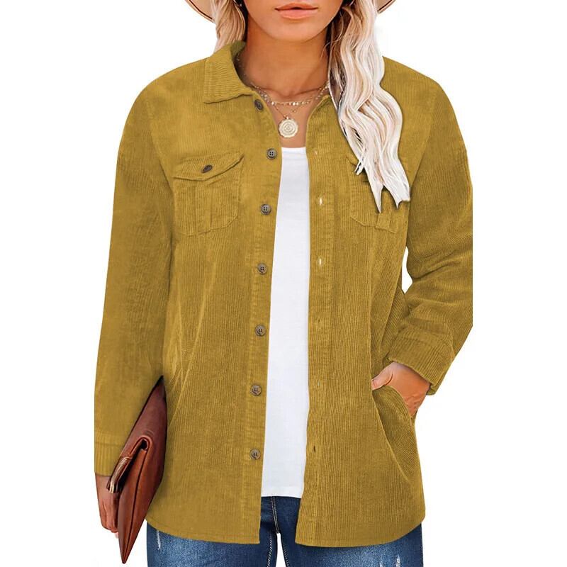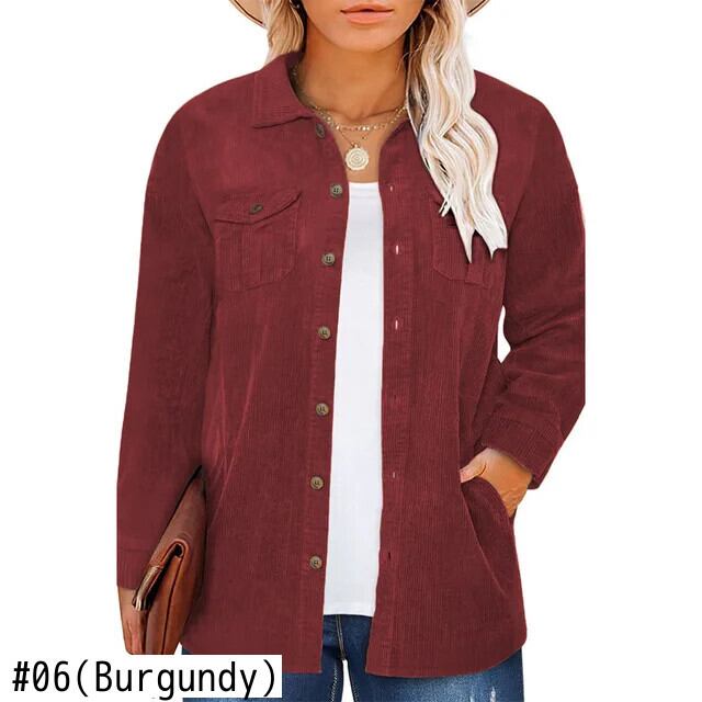 送料無料 春秋ブラウス女性のコーデュロイ大きいサイズ長袖シャツラペル固体ルーズコートカーディガン 24075 ロング 大きめサイズ スプリング 春物 オータム 秋物 ソリッドカラー AE665656612371743768