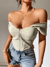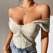 送料無料 2023 Y2k クロップトップス女性のセクシーなオフショルダーシャツとブラウス夏ジッパーストリートショートガール 26641 サマー 夏物 AE6656566295209940