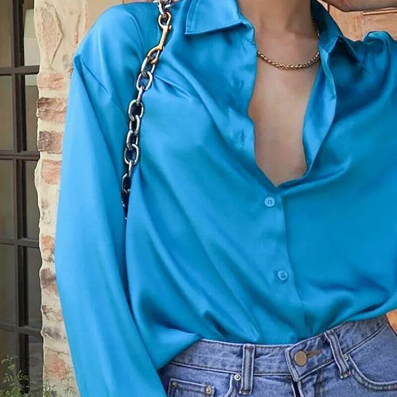 送料無料 秋のオフィスレディルーズターンダウン襟ボタン服ブルーシャツ 2023 長袖シャツ女性 29369 ロング オータム 秋物 会社 学校 通勤や通学にも AE665656654223549443