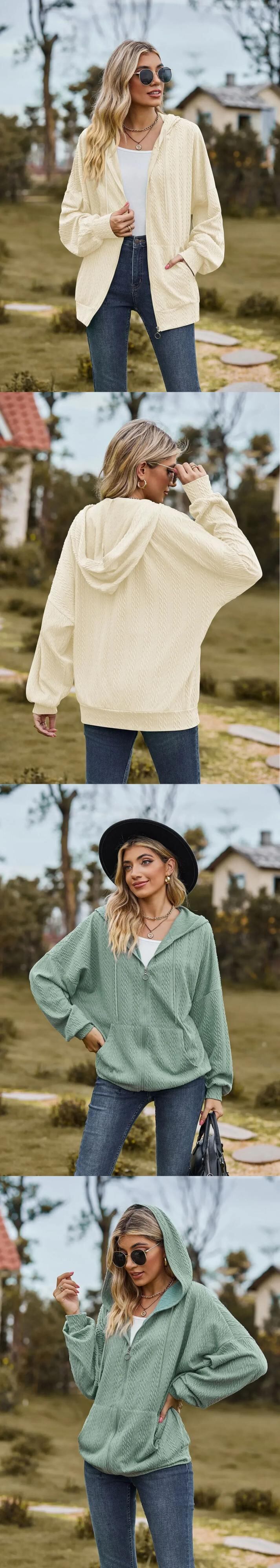 送料無料 ソリッドカラーパーカー長袖ジッパースウェットフード付きコート女性 2023 秋冬ポケットルーズ服 29545 ロング シャツ オータム 秋物 ウィンター 冬物 AE665656611387996768