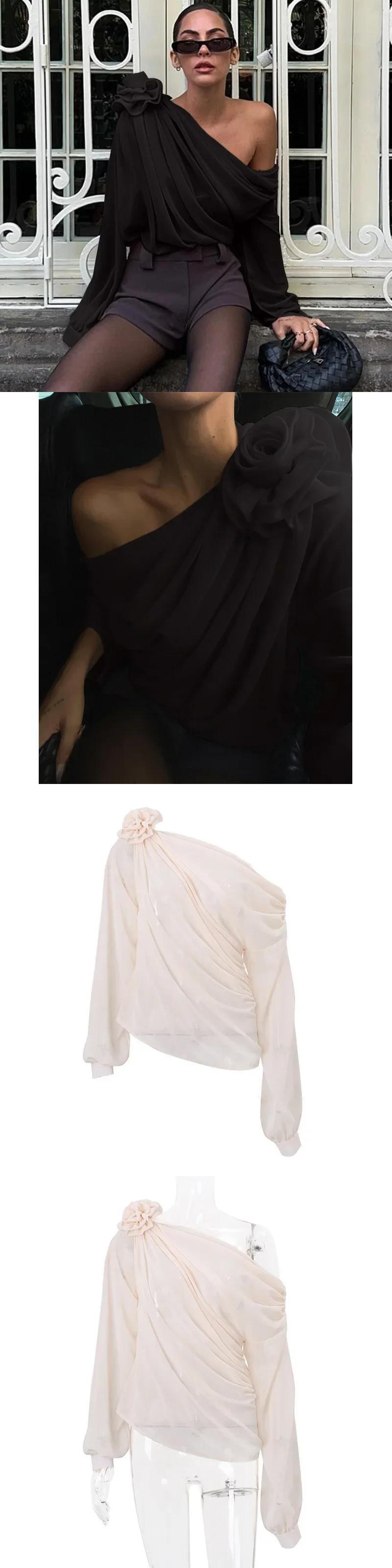 送料無料 セクシークラブクロップドトップススキューカラー花アップリケメッシュシフォントップス女性シースループルオーバー 30315 花柄 AE66565662307868390 | 女性の為の通販サイト-fashion navi