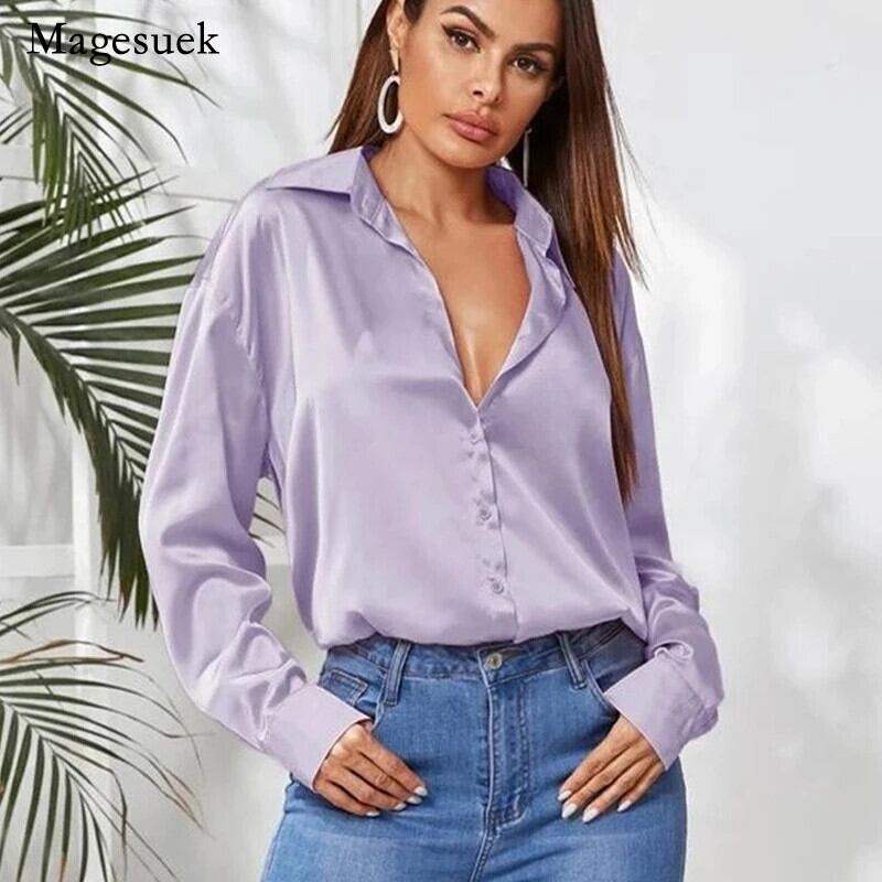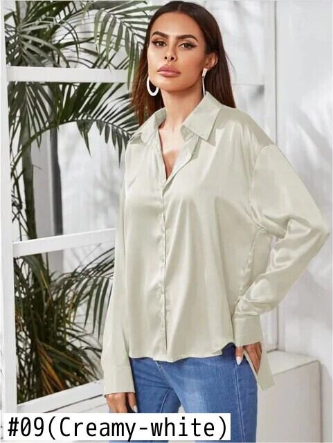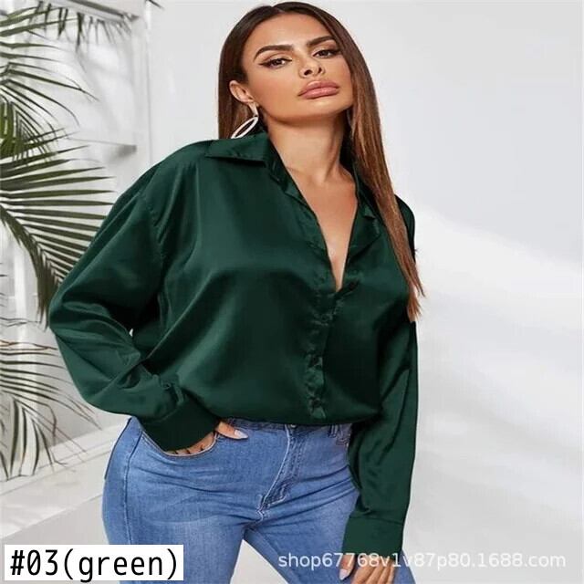 送料無料 春秋固体ルーズサテンブラウス女性長袖シングルブレストシルクシャツ女性トップス女性の 22127 ロング スプリング 春物 オータム 秋物 ソリッドカラー AE665656654773241460
